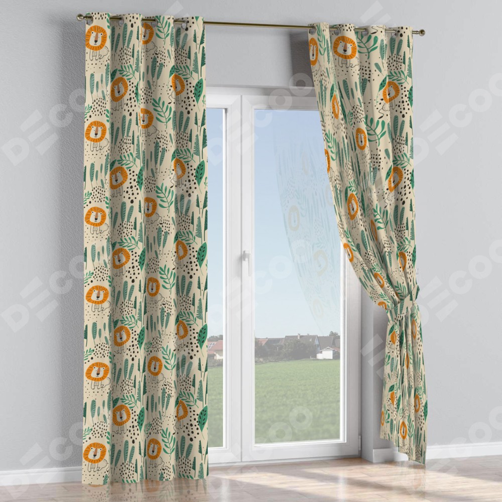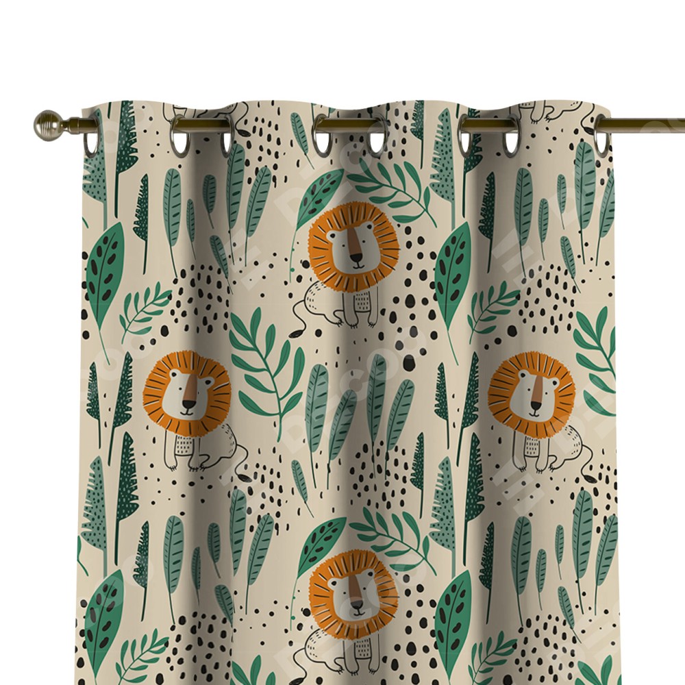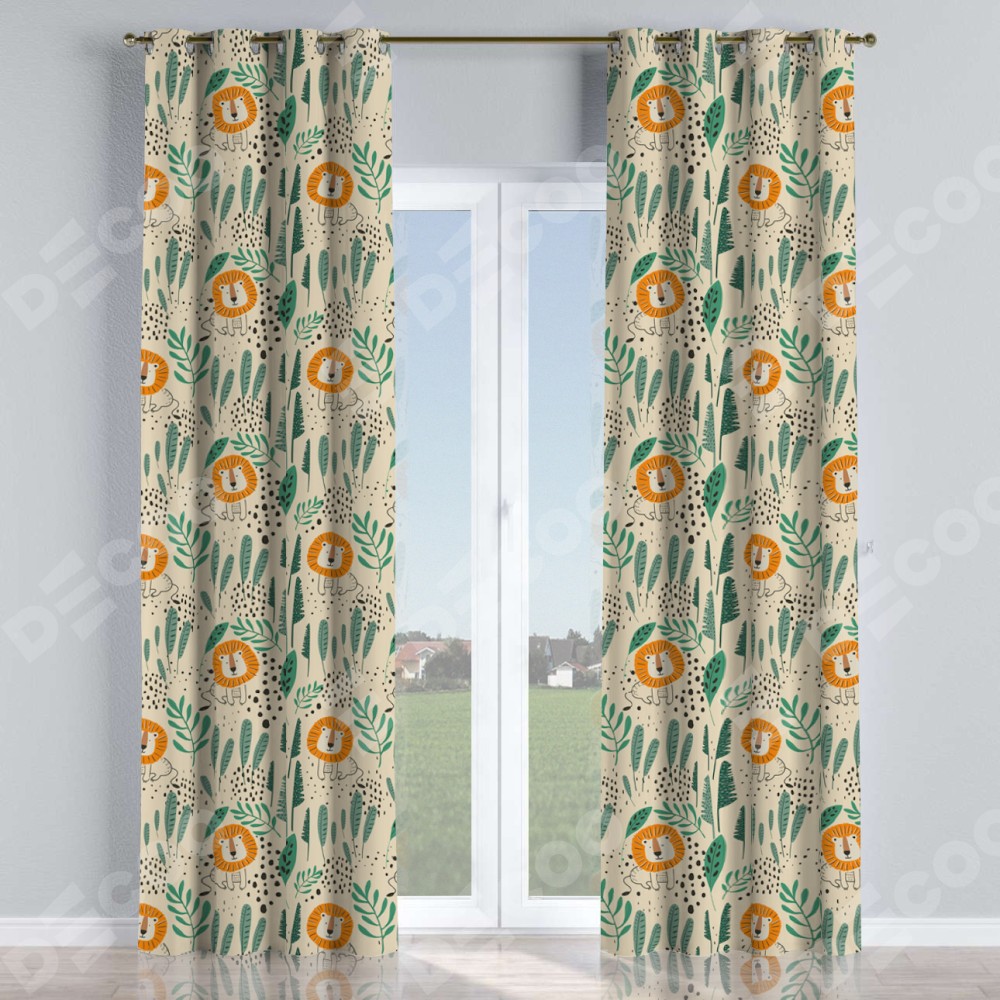 Комплект прямых штор, от производителя «Cortin», пошиты из ткани блэкаут с нанесением сублимационной печати «Лев из джунглей». Данная модель пошита на люверсах, комплектуется на выбор круглым карнизом и подходит для монтажа на стену или потолок. Прямые шторы на люверсах шьются по стандарту с коэффициентом 1/2 (на 100 см. ширины проёма 200 см. ширины ткани), отличительным преимуществом данной модели является простой способ монтажа. Достаточно повесить ее на трубу и штора готова!