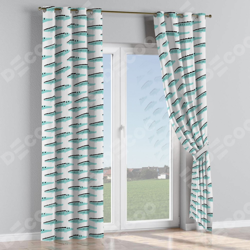 Комплект прямых штор, от производителя «Cortin», пошиты из ткани блэкаут с нанесением сублимационной печати «Мистер Крок». Данная модель пошита на люверсах, комплектуется на выбор круглым карнизом и подходит для монтажа на стену или потолок. Прямые шторы на люверсах шьются по стандарту с коэффициентом 1/2 (на 100 см. ширины проёма 200 см. ширины ткани), отличительным преимуществом данной модели является простой способ монтажа. Достаточно повесить ее на трубу и штора готова!