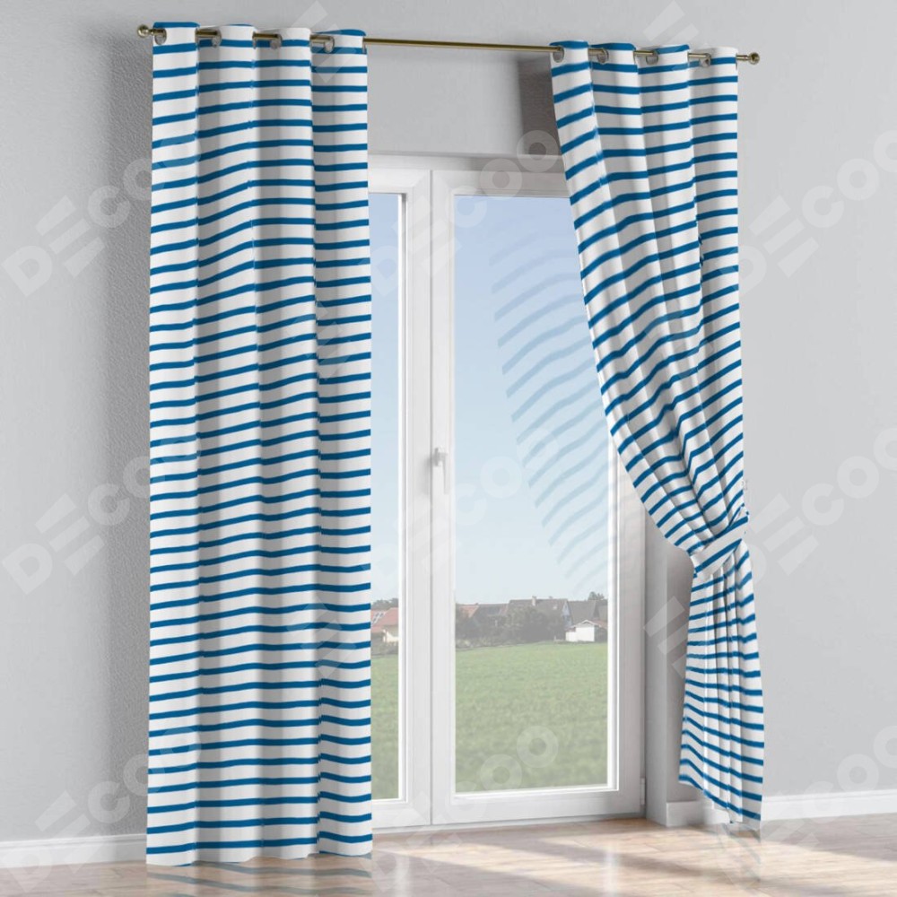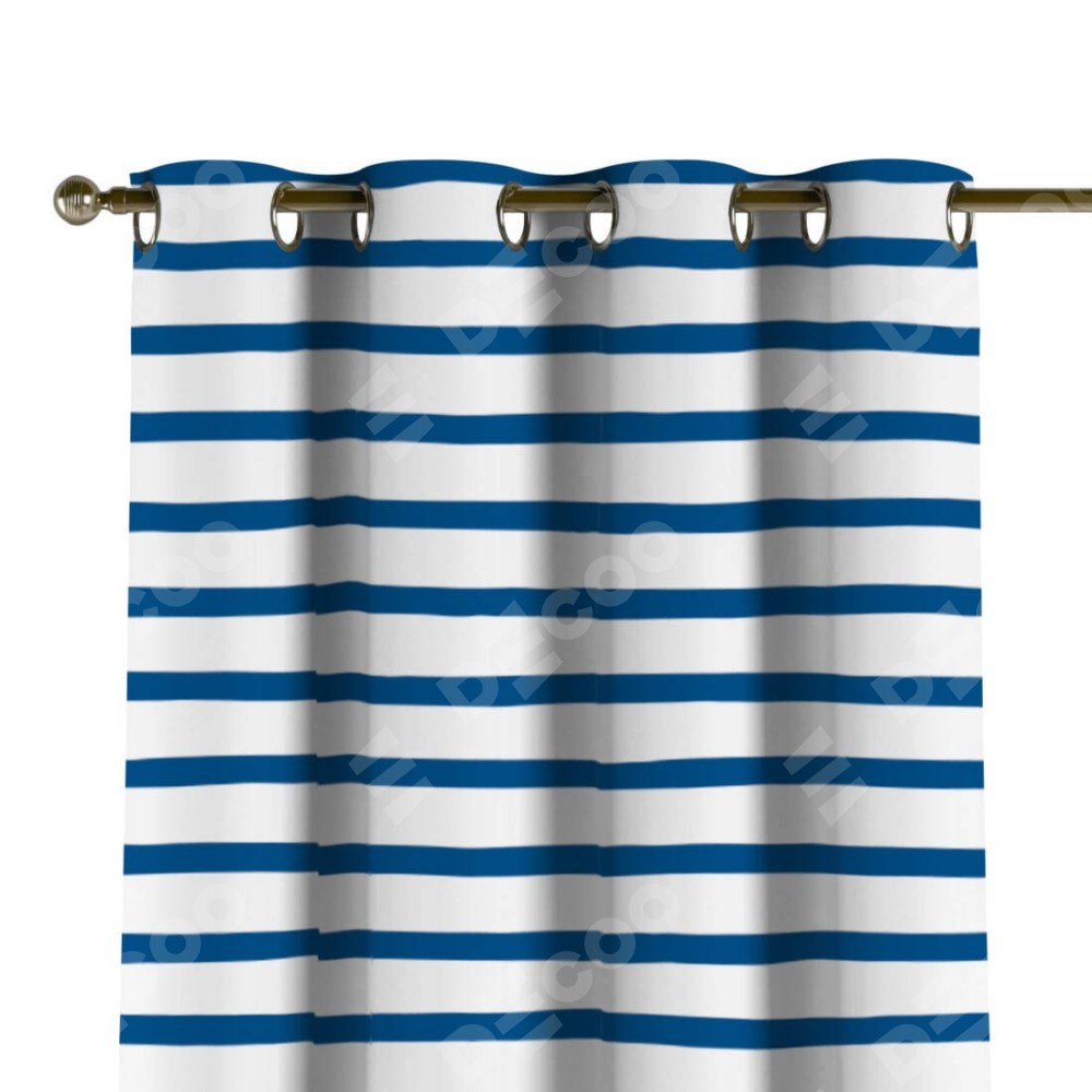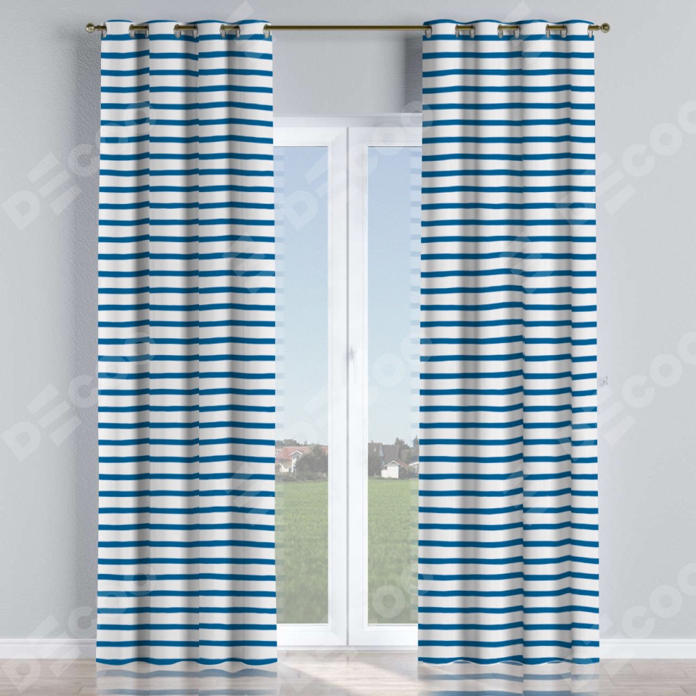 Комплект прямых штор, от производителя «Cortin», пошиты из ткани блэкаут с нанесением сублимационной печати «Морская полоска». Данная модель пошита на люверсах, комплектуется на выбор круглым карнизом и подходит для монтажа на стену или потолок. Прямые шторы на люверсах шьются по стандарту с коэффициентом 1/2 (на 100 см. ширины проёма 200 см. ширины ткани), отличительным преимуществом данной модели является простой способ монтажа. Достаточно повесить ее на трубу и штора готова!