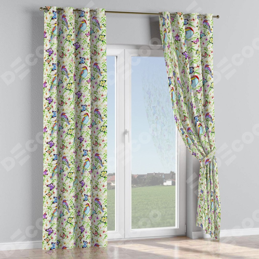 Комплект прямых штор, от производителя «Cortin», пошиты из ткани блэкаут с нанесением сублимационной печати «Тропические птицы». Данная модель пошита на люверсах, комплектуется на выбор круглым карнизом и подходит для монтажа на стену или потолок. Прямые шторы на люверсах шьются по стандарту с коэффициентом 1/2 (на 100 см. ширины проёма 200 см. ширины ткани), отличительным преимуществом данной модели является простой способ монтажа. Достаточно повесить ее на трубу и штора готова!