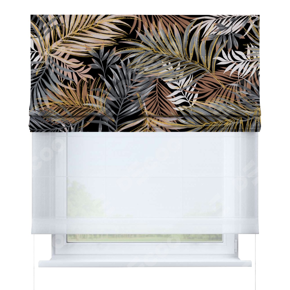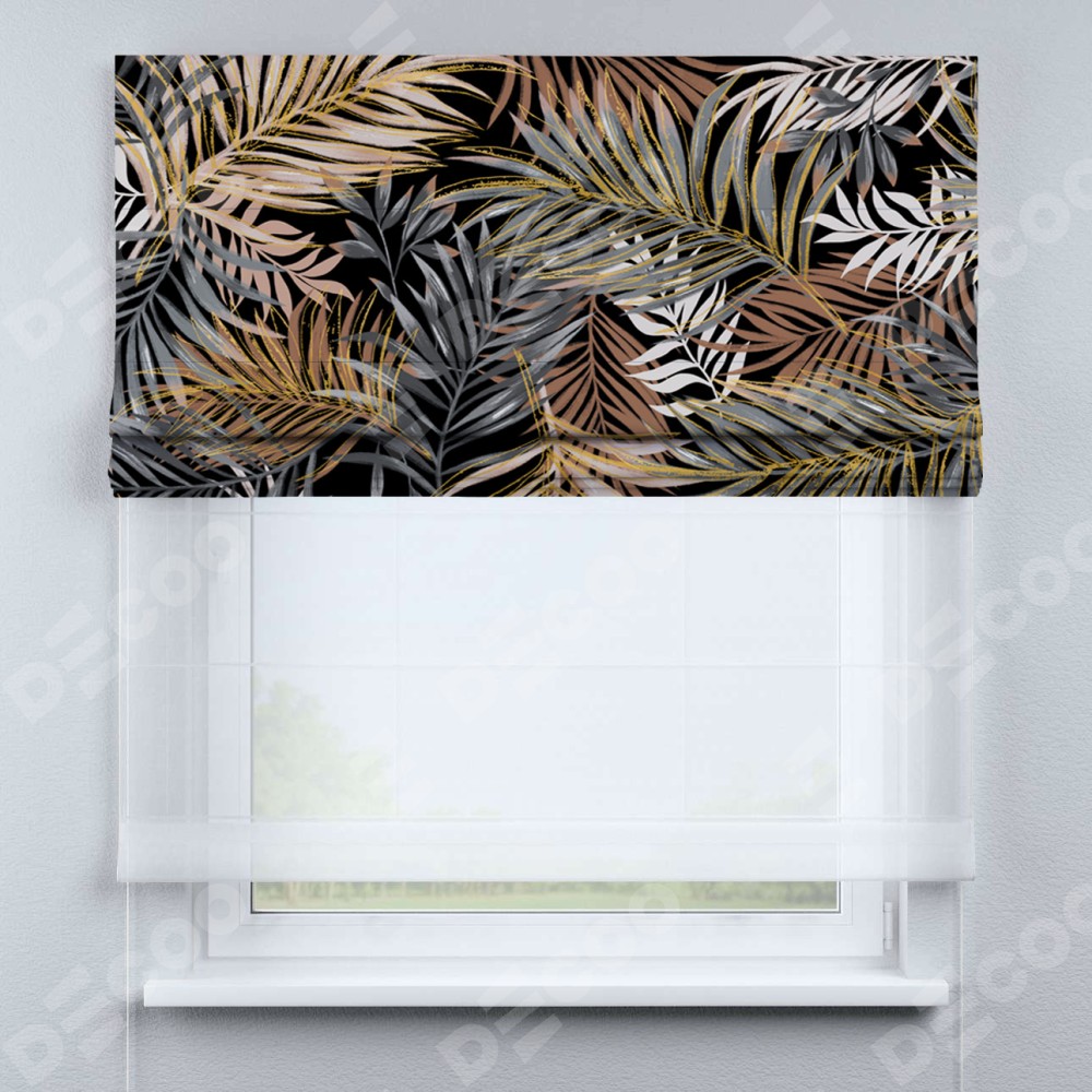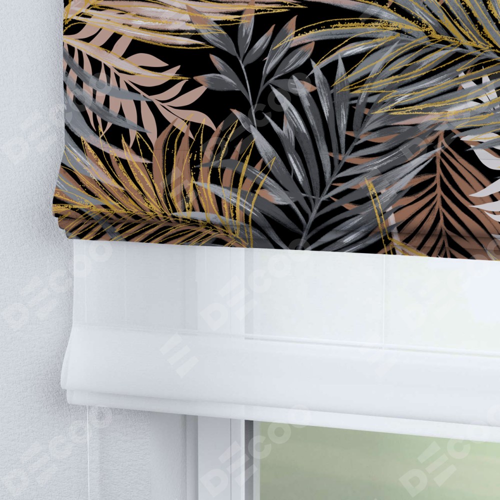 Римская штора день-ночь производителя «Cortin», используется для проёма, пошита из двух полотен, с лицевой блэкаут с нанесением сублимационной печати «Закат в тропиках», вторая ткань тюль (по стандарту комплектуется тюль белого цвета артикул V-01). Имеет универсальный механизм и подходит для монтажа: на потолок, на стену и в нишу.