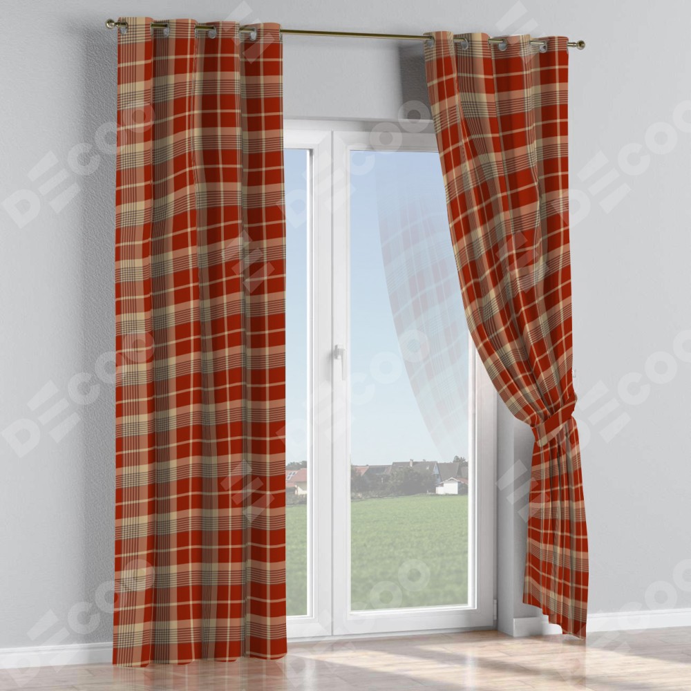 Комплект штор на люверсах «Бежево-бордовая клетка»