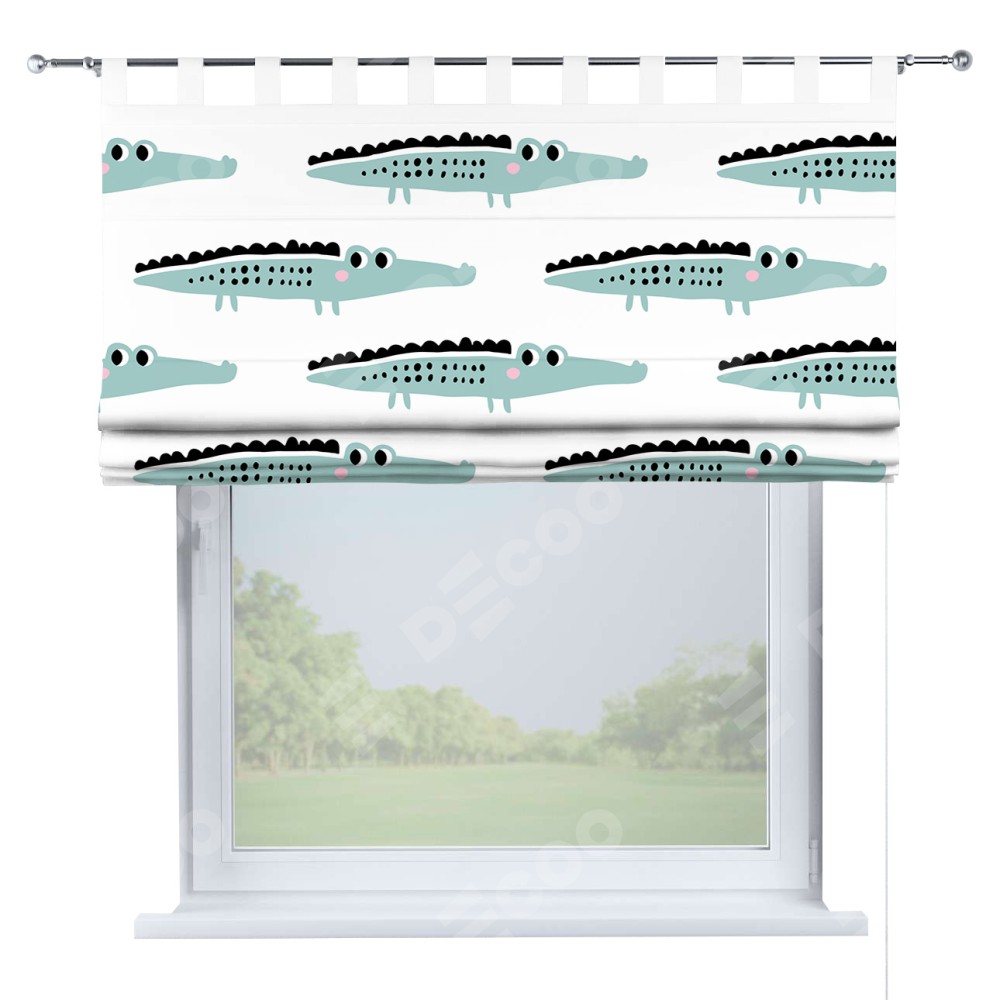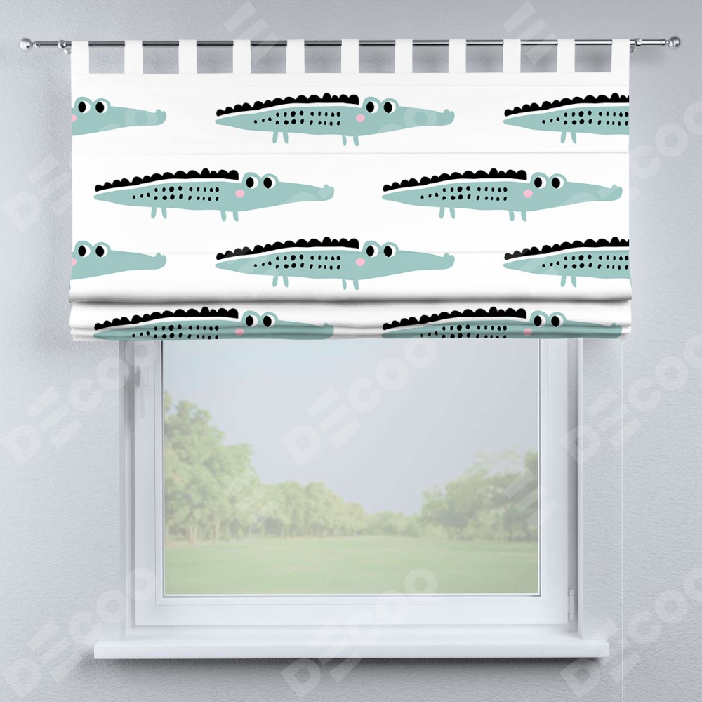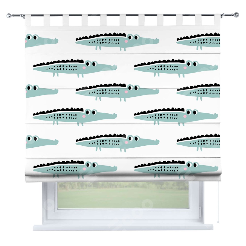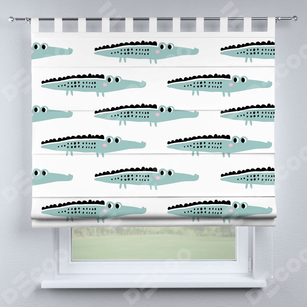 Римская штора производителя «Cortin», используется для проёма, пошита из ткани блэкаут с нанесением сублимационной печати «Мистер Крок». Данная модель пошита на петлях, комплектуется на выбор круглым карнизом и подходит для монтажа на стену. Римская штора на петлях имеет простую систему регулировки высоты, отличительным преимуществом данной модели является простой способ монтажа. Достаточно повесить ее на трубу и штора готова!
