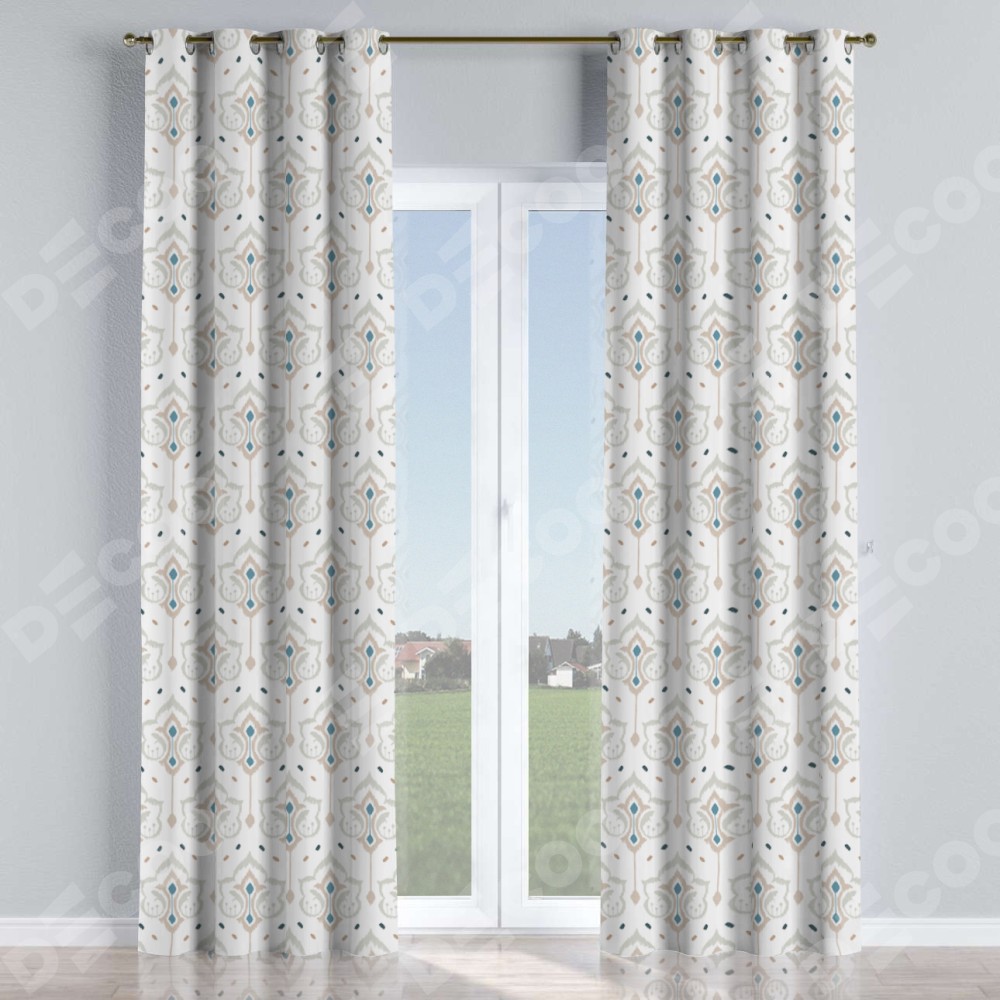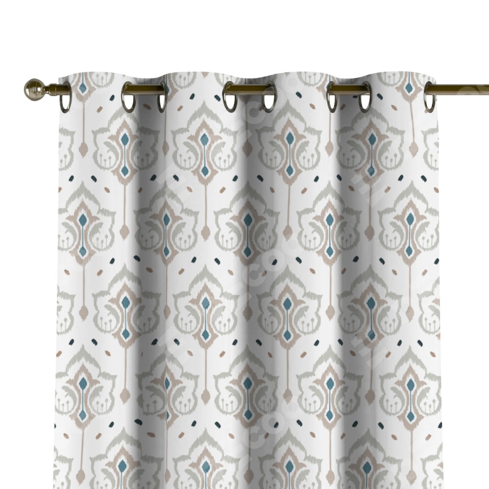 Комплект прямых штор, от производителя «Cortin», пошиты из ткани блэкаут с нанесением сублимационной печати «Икат узор». Данная модель пошита на люверсах, комплектуется на выбор круглым карнизом и подходит для монтажа на стену или потолок. Прямые шторы на люверсах шьются по стандарту с коэффициентом 1/2 (на 100 см. ширины проёма 200 см. ширины ткани), отличительным преимуществом данной модели является простой способ монтажа. Достаточно повесить ее на трубу и штора готова!