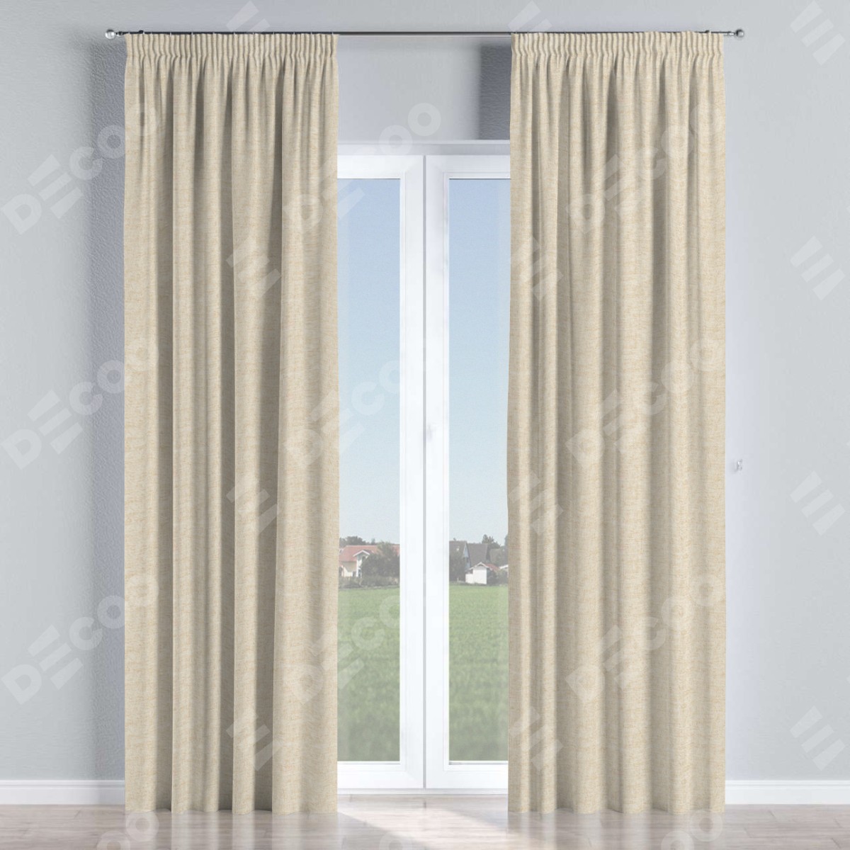 Комплект прямых штор, от производителя «Cortin», пошиты из ткани стиф димаут молочный, артикул ткани 18082. С изнаночной стороны в верхней части штор пристрачивается шторная лента с декоративными складками «Карандаш». Для создания элегантных складок прямые шторы шьются по стандарту с коэффициентом 1:2 (на 100 см. ширины проёма 200 см. ширины ткани).