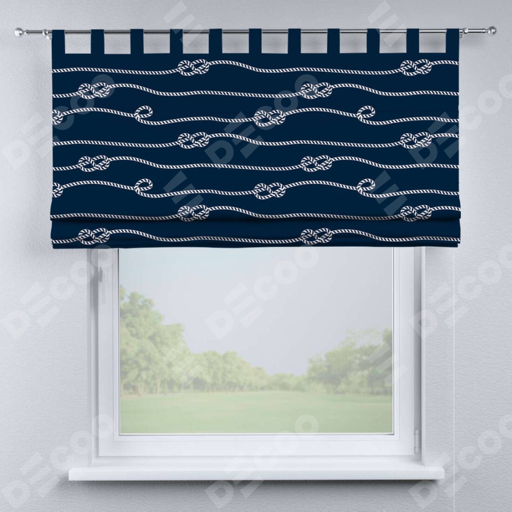 Римская штора производителя «Cortin», используется для проёма, пошита из ткани блэкаут с нанесением сублимационной печати «Морской узел». Данная модель пошита на петлях, комплектуется на выбор круглым карнизом и подходит для монтажа на стену. Римская штора на петлях имеет простую систему регулировки высоты, отличительным преимуществом данной модели является простой способ монтажа. Достаточно повесить ее на трубу и штора готова!