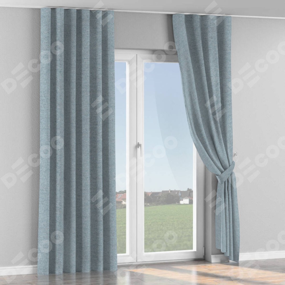 Комплект прямых штор, от производителя «Cortin», пошиты из ткани стиф димаут светло-серый, артикул ткани 44025. С изнаночной стороны в верхней части штор пристрачивается шторная лента с декоративными складками «Волна». Для создания элегантных складок прямые шторы шьются по стандарту с коэффициентом 1:2 (на 100 см. ширины проёма 200 см. ширины ткани).