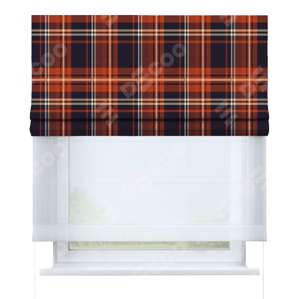 Римская штора «Кортин» день-ночь «Сине-оранжевая клетка»
