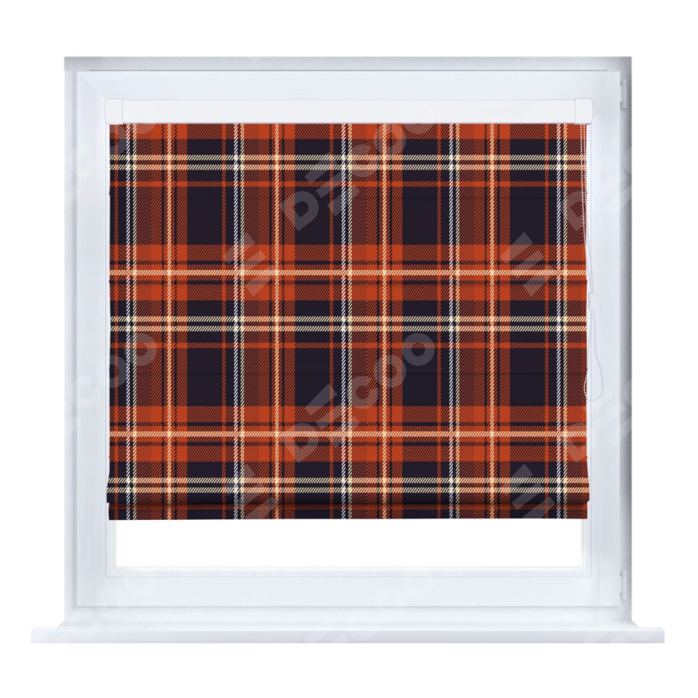 Римская штора производителя «Cortin», устанавливается на створку окна, пошита из ткани блэкаут с нанесением сублимационной печати «Сине-оранжевая клетка». Штора шьётся по индивидуальным размерам, для данного типа римской шторы возможная ширина от 35 до 150 см., высота до 250 см.