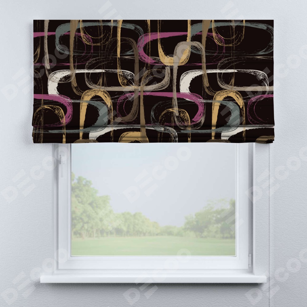 Римская штора производителя «Cortin», используется для проёма, пошита из ткани блэкаут с нанесением сублимационной печати «Тёмная палитра». Имеет универсальный механизм и подходит для монтажа: на потолок, на стену и в нишу.