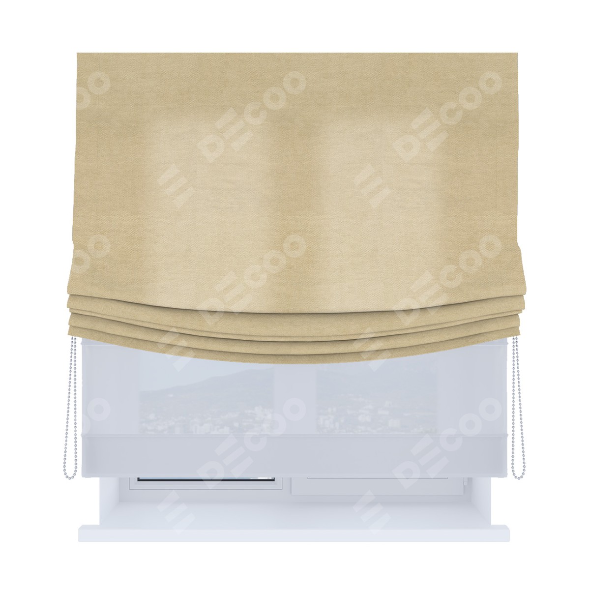 Римская штора день-ночь производителя «Cortin», используется для проёма, пошита из двух полотен, с лицевой стороны вельвет бежевый артикул 85538, вторая ткань тюль (по стандарту комплектуется тюль белого цвета артикул V-01). Имеет универсальный механизм и подходит для монтажа: на потолок, на стену и в нишу. Удобное управление каждой шторой отдельно.