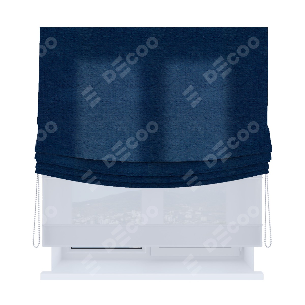 Римская штора день-ночь производителя «Cortin», используется для проёма, пошита из двух полотен, с лицевой стороны софт однотонный синий артикул 42937, вторая ткань тюль (по стандарту комплектуется тюль белого цвета артикул V-01). Имеет универсальный механизм и подходит для монтажа: на потолок, на стену и в нишу. Удобное управление каждой шторой отдельно.