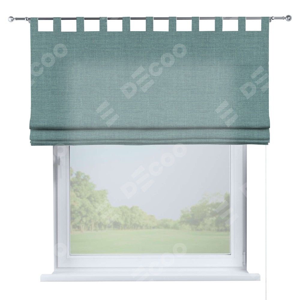 Римская штора на петлях «Кортин», выполнена в ткани лён голубой