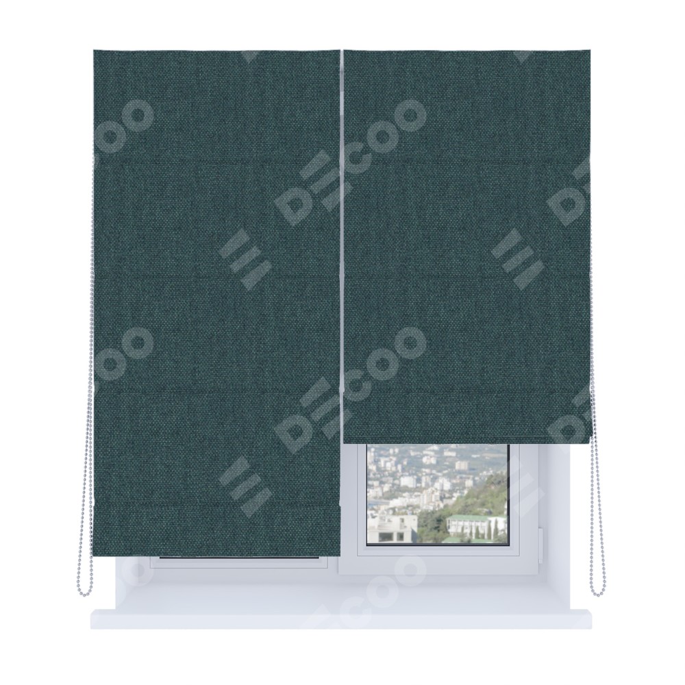 Римская штора производителя «Cortin», используется для проёма, пошита из ткани лён димаут серо-синий, артикул ткани 03238. Имеет универсальный механизм и подходит для монтажа: на потолок, на стену и в нишу. Удобное управление каждой шторой отдельно.