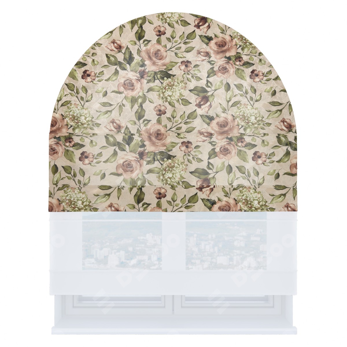 Римская штора «Кортин» день-ночь для арочного проёма, ткань «Розы бежевые»
