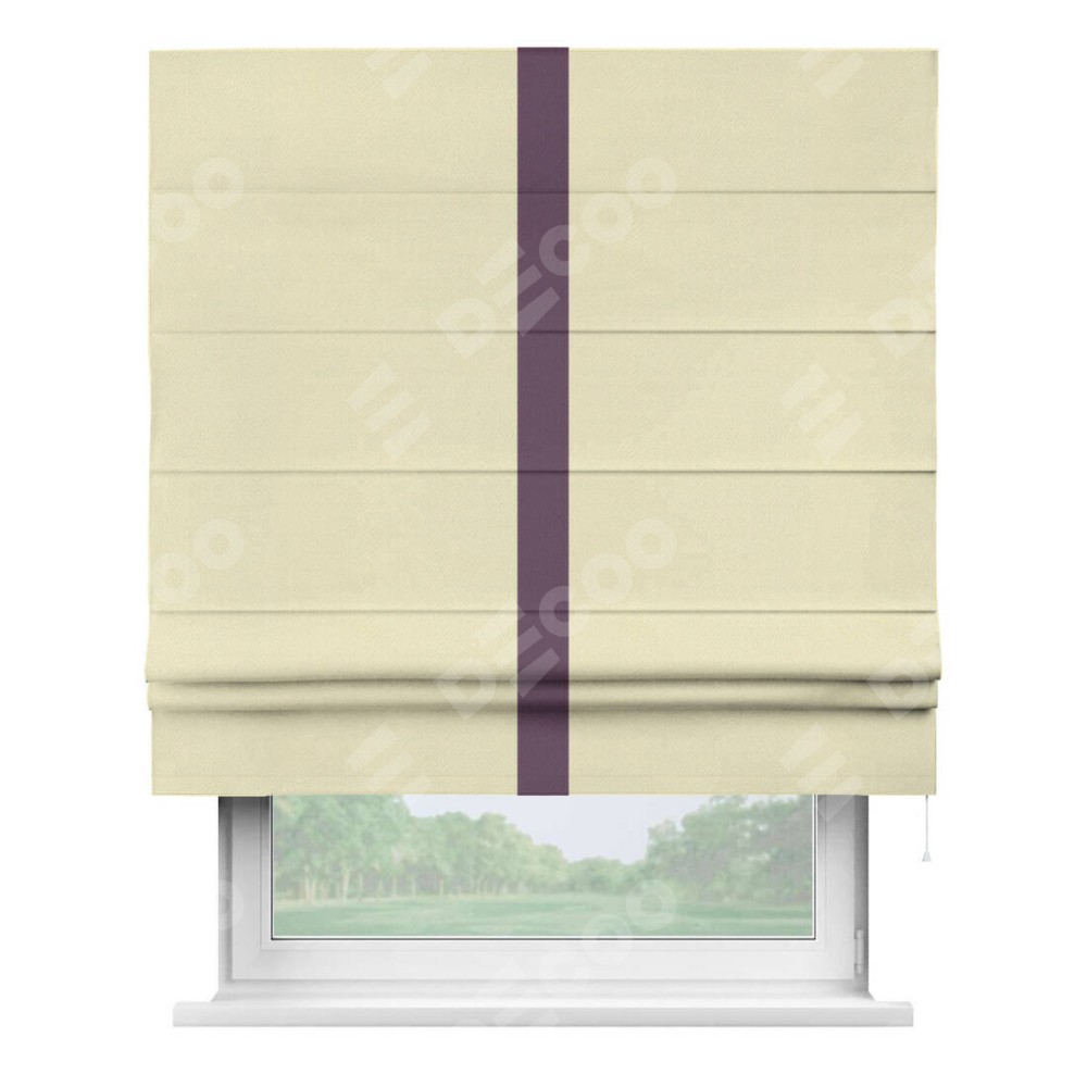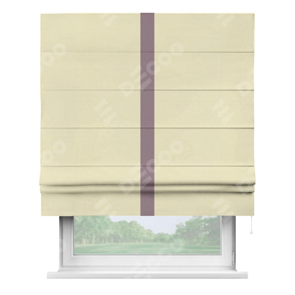 Римская штора производителя «Cortin», используется для проёма, пошита из ткани блэкаут однотонный бежевый, артикул ткани 88283. Отделка шторы кантом «Хайвей», ткань для канта используется из блэкаута однотонного разной расцветки на выбор. Имеет универсальный механизм и подходит для монтажа: на потолок, на стену и в нишу.