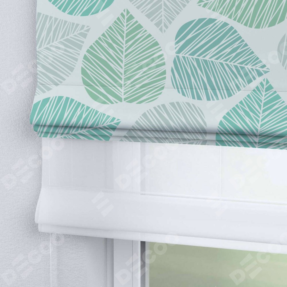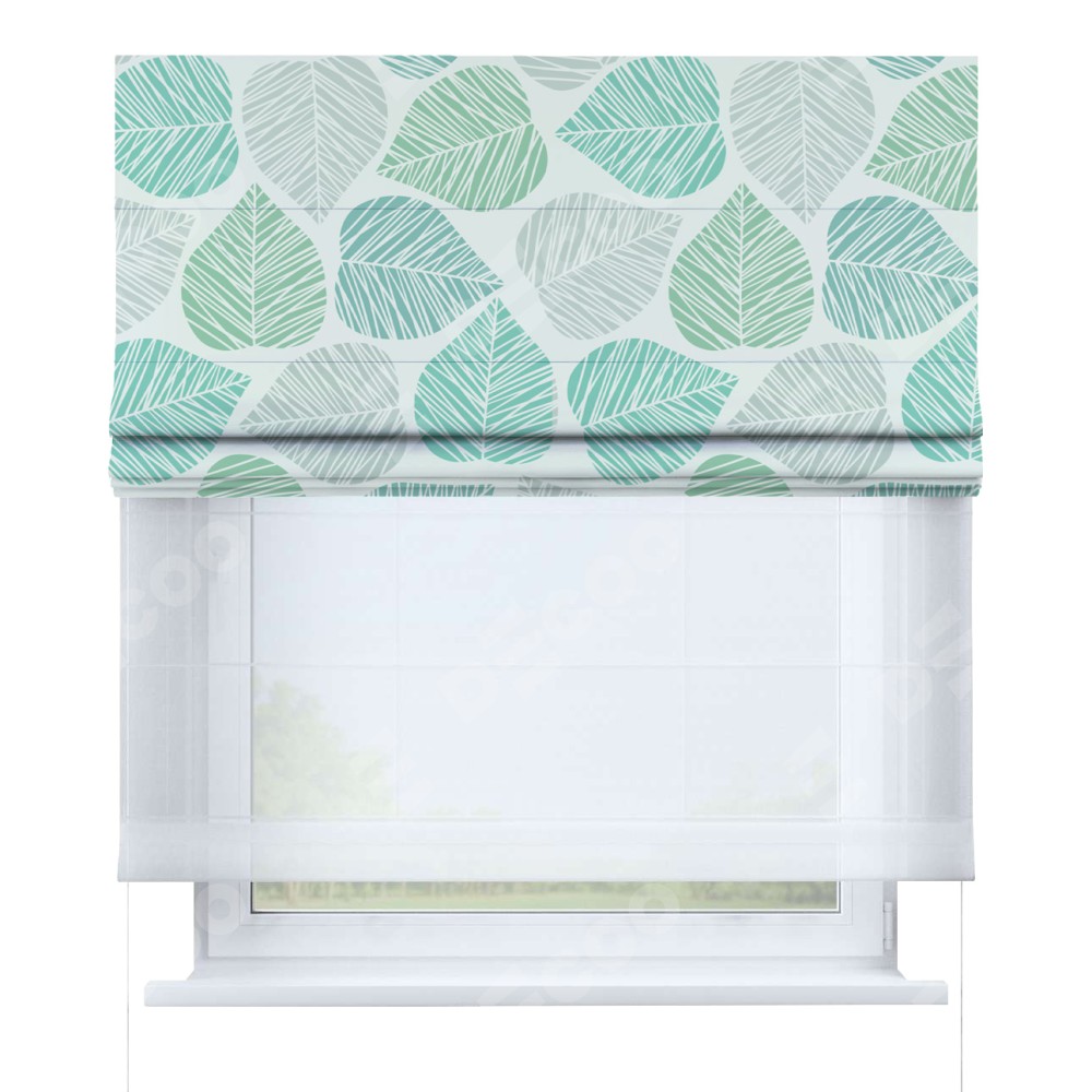 Римская штора день-ночь производителя «Cortin», используется для проёма, пошита из двух полотен, с лицевой блэкаут с нанесением сублимационной печати «Весенняя листва», вторая ткань тюль (по стандарту комплектуется тюль белого цвета артикул V-01). Имеет универсальный механизм и подходит для монтажа: на потолок, на стену и в нишу.
