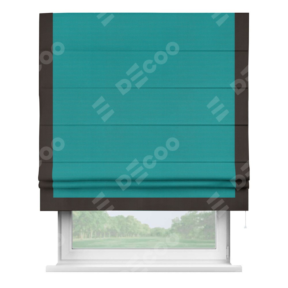 Римская штора «Кортин» с кантом Виктория, для проема, ткань блэкаут однотонный бирюзовый