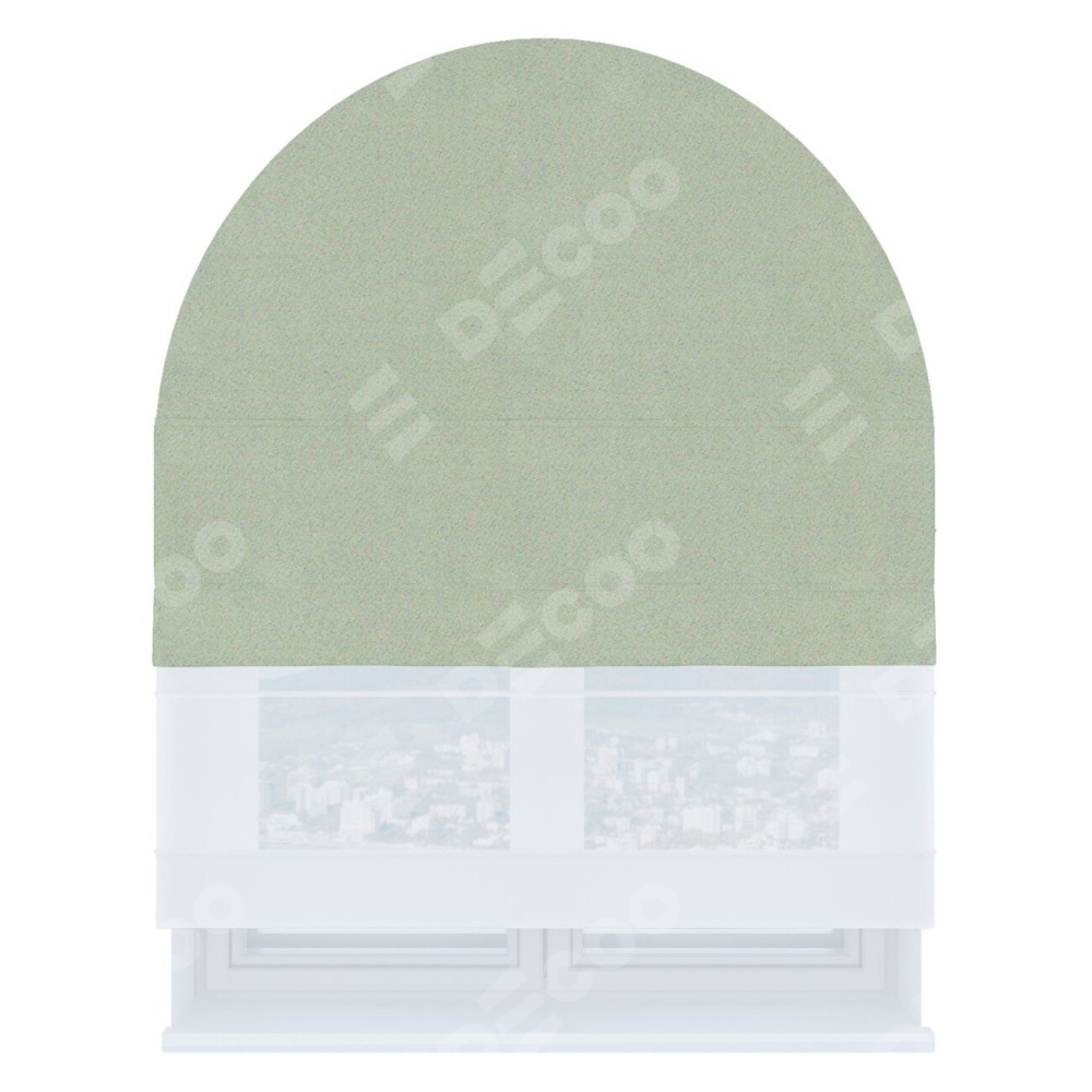 Римская штора день-ночь производителя «Cortin», используется для арочного проёма, пошита из двух полотен, с лицевой стороны блэкаут однотонный светло-серый артикул 29332−2, вторая ткань тюль (по стандарту комплектуется тюль белого цвета артикул V-01). Штора шьётся по индивидуальным размерам, для данного типа римской шторы возможная ширина от 60 до 300 см. Удобное управление каждой шторой отдельно.