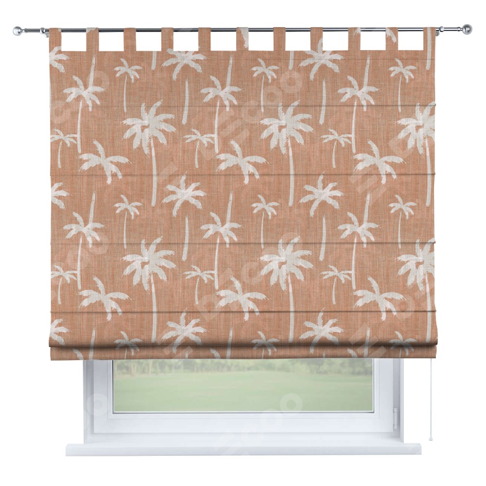Римская штора производителя «Cortin», используется для проёма, пошита из ткани блэкаут с нанесением сублимационной печати «Пальмы на закате». Данная модель пошита на петлях, комплектуется на выбор круглым карнизом и подходит для монтажа на стену. Римская штора на петлях имеет простую систему регулировки высоты, отличительным преимуществом данной модели является простой способ монтажа. Достаточно повесить ее на трубу и штора готова!