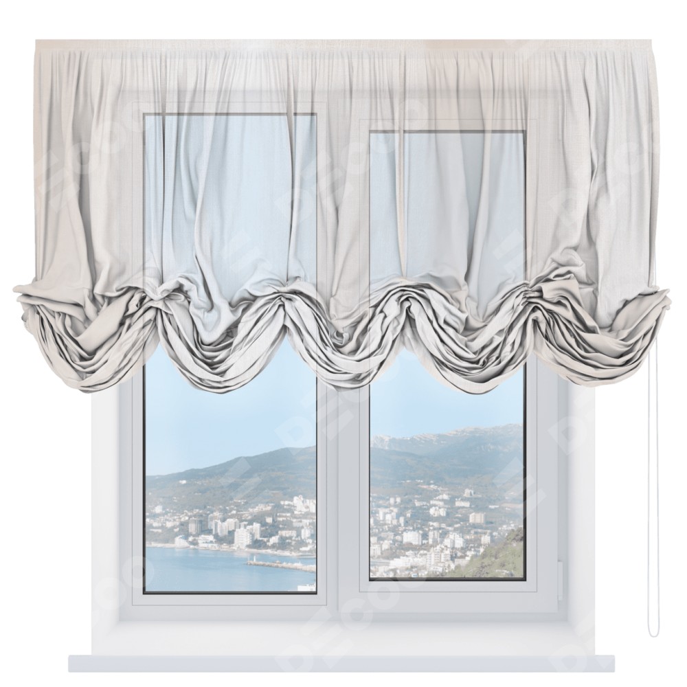 Австрийская штора производителя «Cortin», используется для проёма, пошита из ткани тюль шампань, артикул ткани V-02. Имеет универсальный механизм и подходит для монтажа: на потолок и на стену.