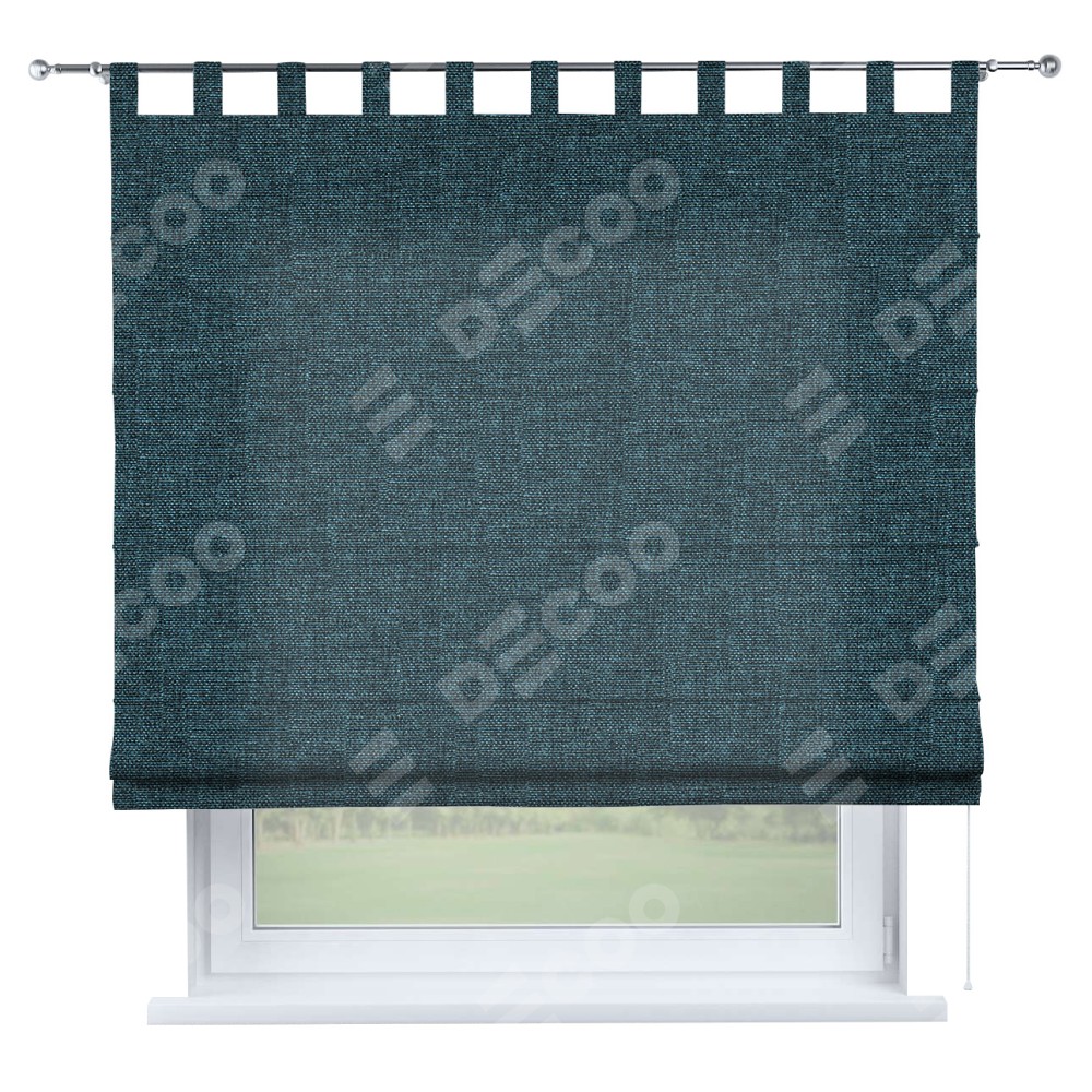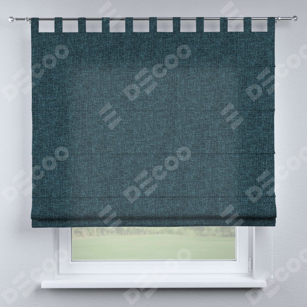 Римская штора на петлях «Кортин», ткань лён кашемир синий