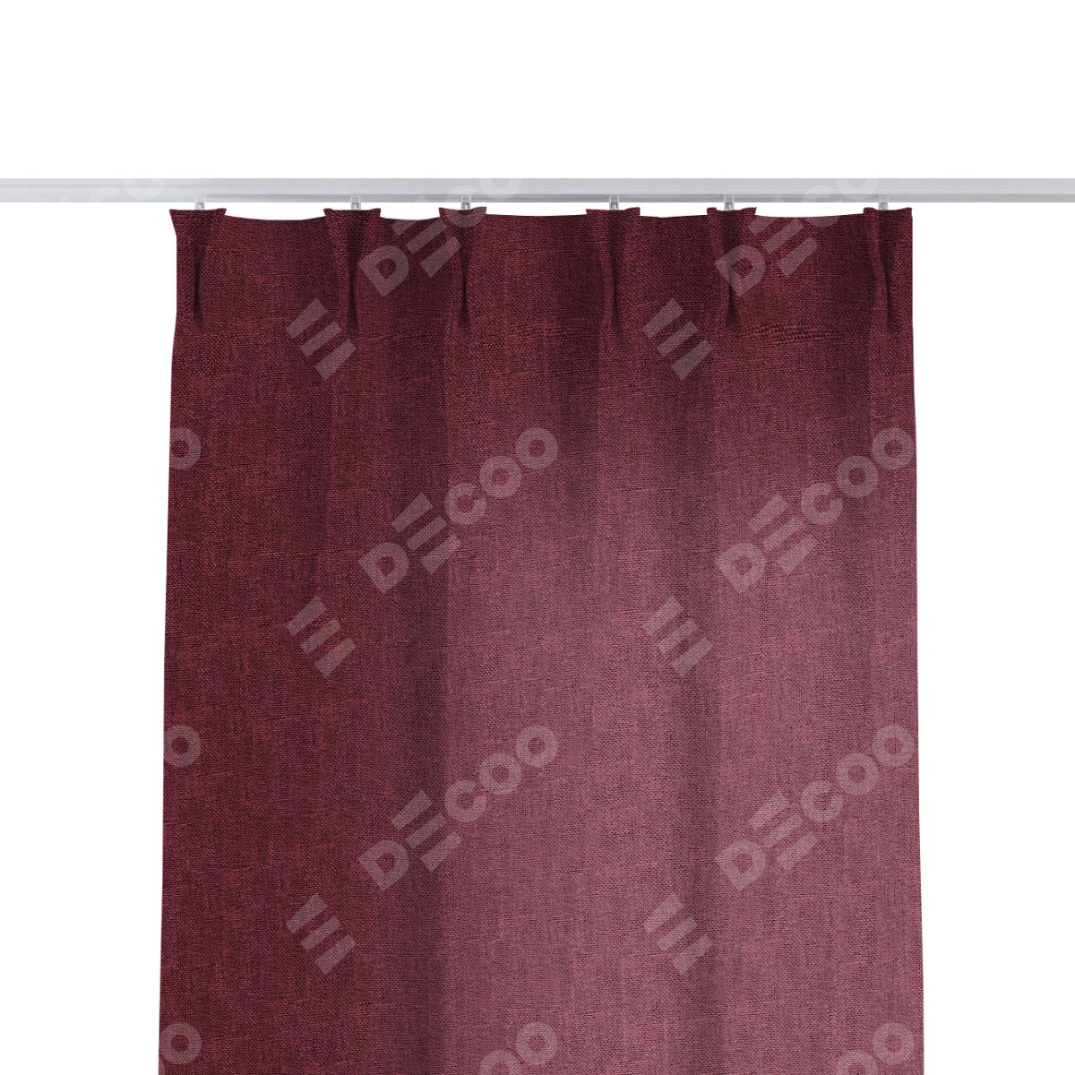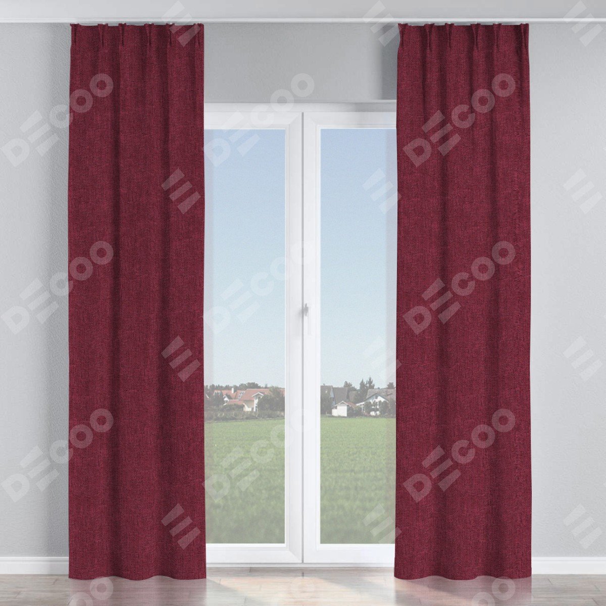 Комплект прямых штор, от производителя «Cortin», пошиты из ткани лён кашемир бордовый, артикул ткани 21621. С изнаночной стороны в верхней части штор пристрачивается шторная лента с декоративными складками «Кустик». Для создания элегантных складок прямые шторы шьются по стандарту с коэффициентом 1:2 (на 100 см. ширины проёма 200 см. ширины ткани).