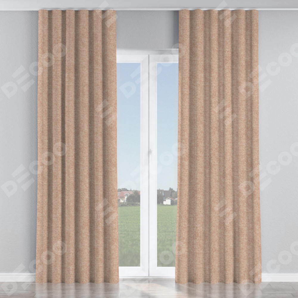 Комплект прямых штор, от производителя «Cortin», пошиты из ткани лён кашемир розовая пудра, артикул ткани 21619. С изнаночной стороны в верхней части штор пристрачивается шторная лента с декоративными складками «Волна». Для создания элегантных складок прямые шторы шьются по стандарту с коэффициентом 1:2 (на 100 см. ширины проёма 200 см. ширины ткани).