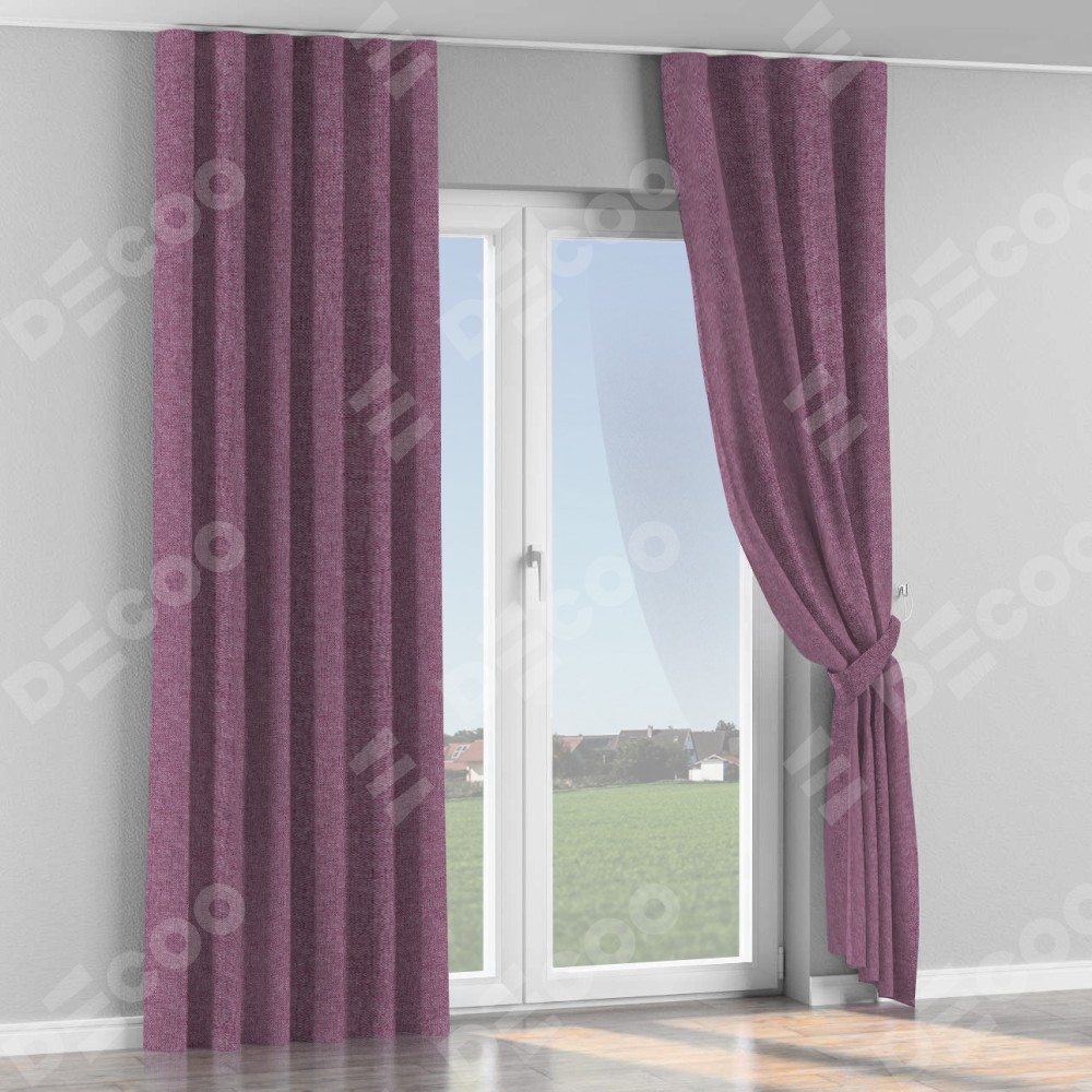 Комплект прямых штор, от производителя «Cortin», пошиты из ткани лён кашемир сиреневый, артикул ткани 21620. С изнаночной стороны в верхней части штор пристрачивается шторная лента с декоративными складками «Волна». Для создания элегантных складок прямые шторы шьются по стандарту с коэффициентом 1:2 (на 100 см. ширины проёма 200 см. ширины ткани).