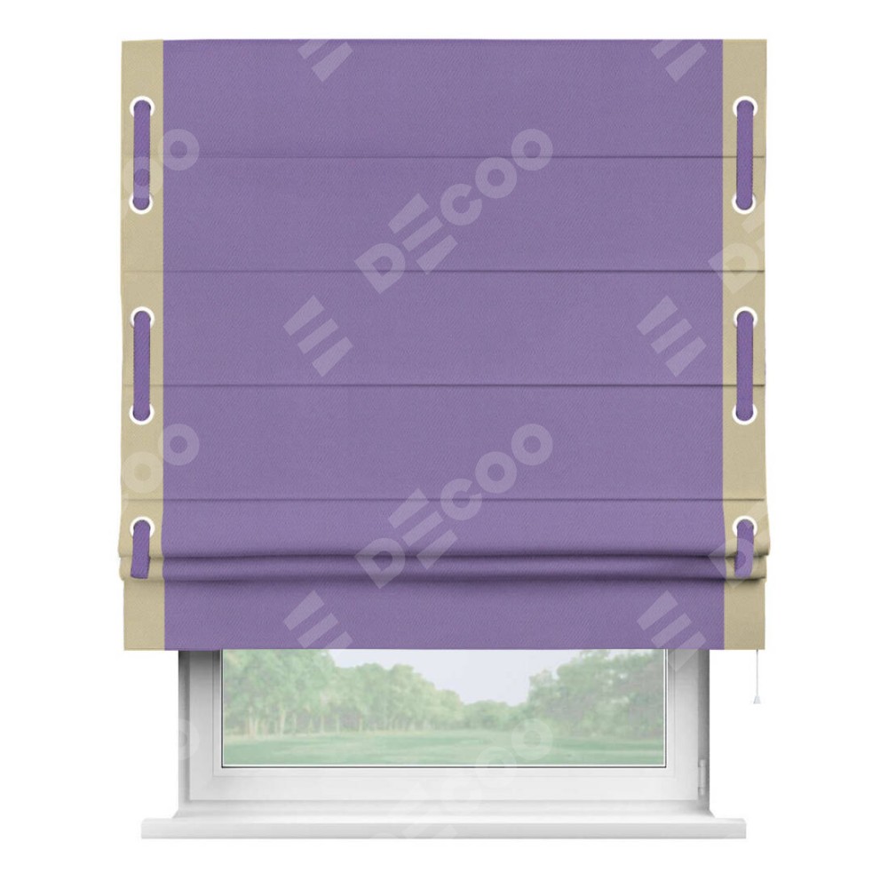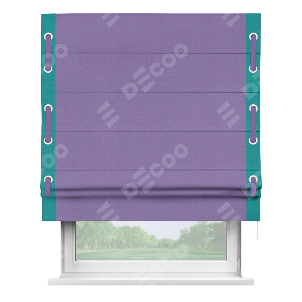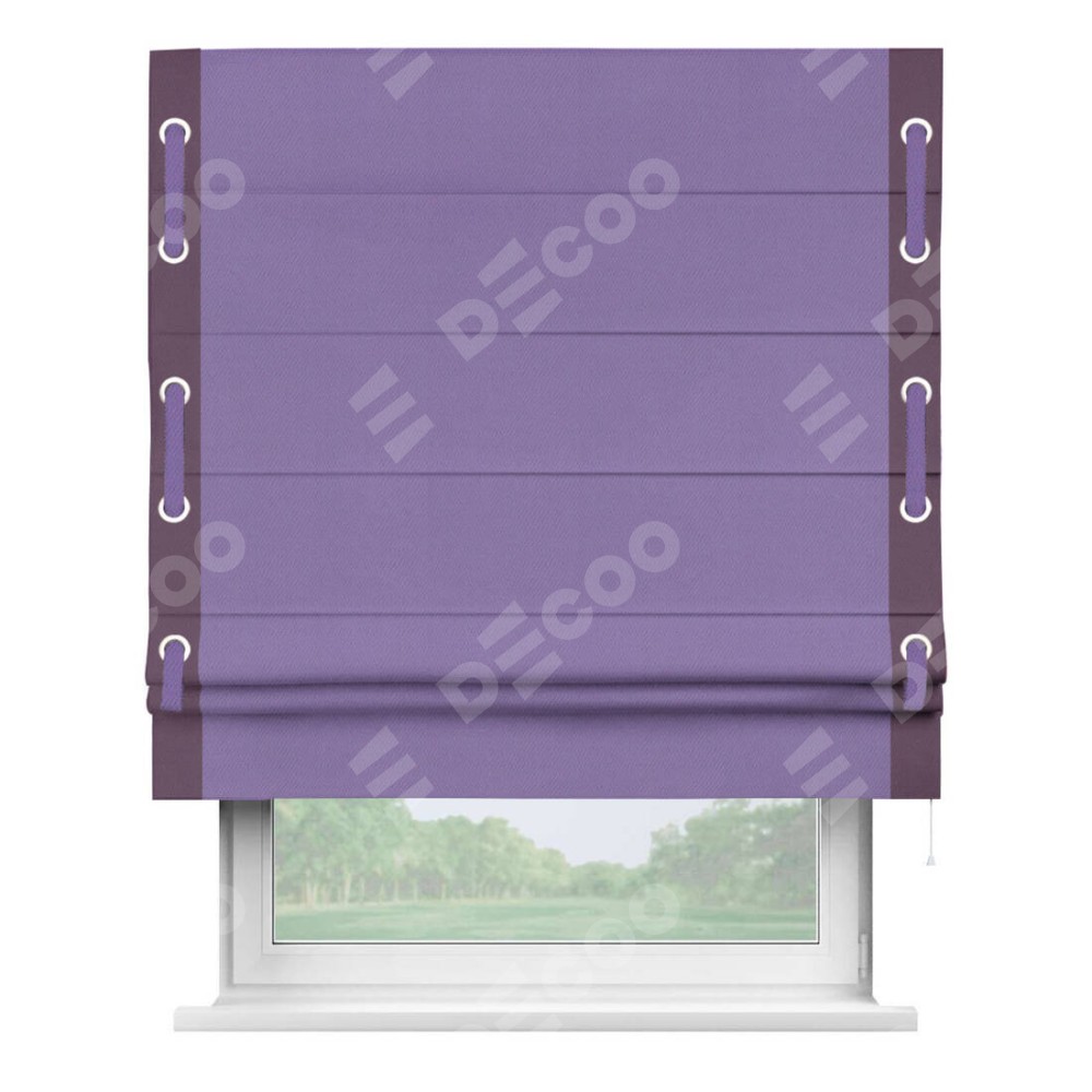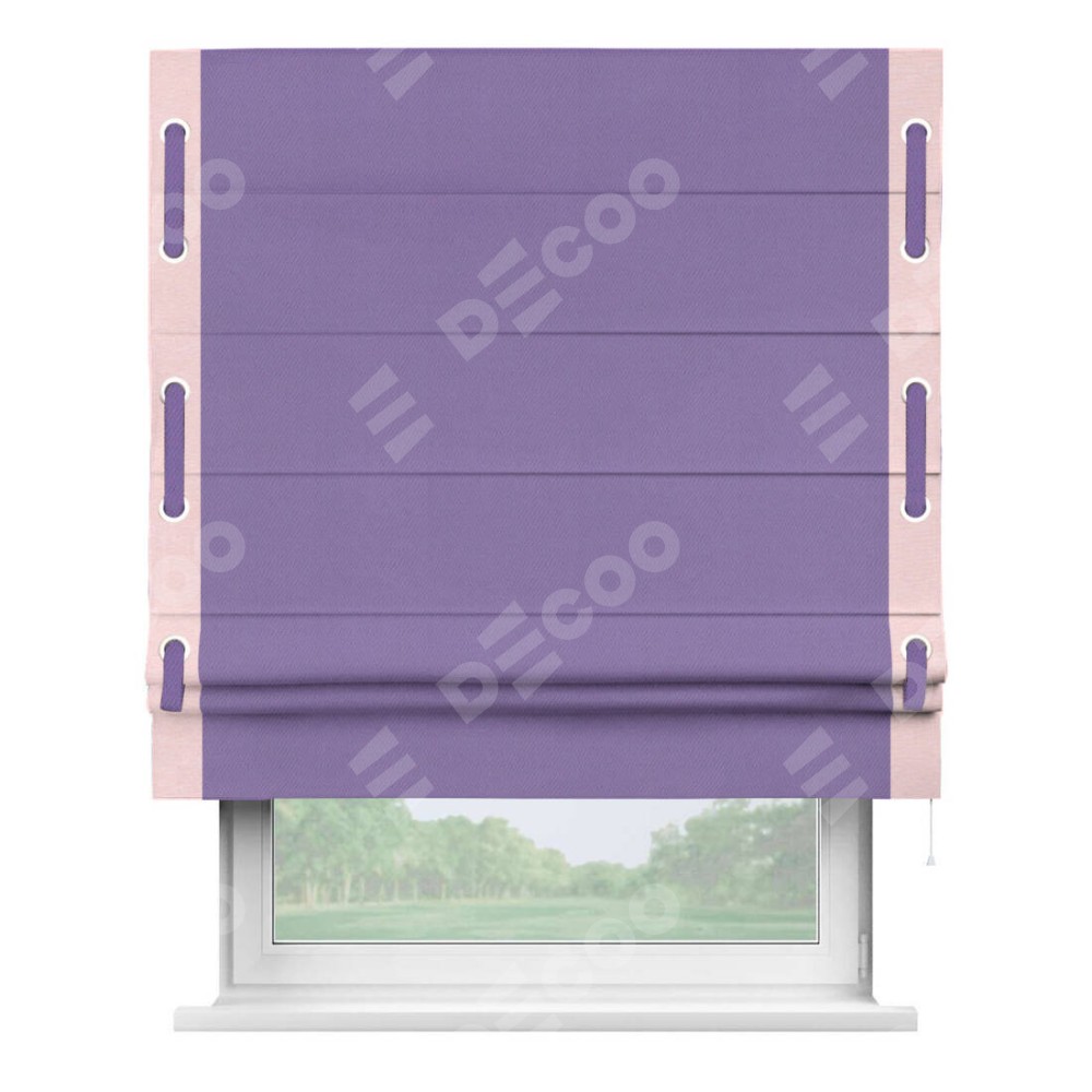Римская штора «Кортин» с кантом Стрим Дуо (люверсы с пояском), для проема, ткань блэкаут однотонный сиреневый