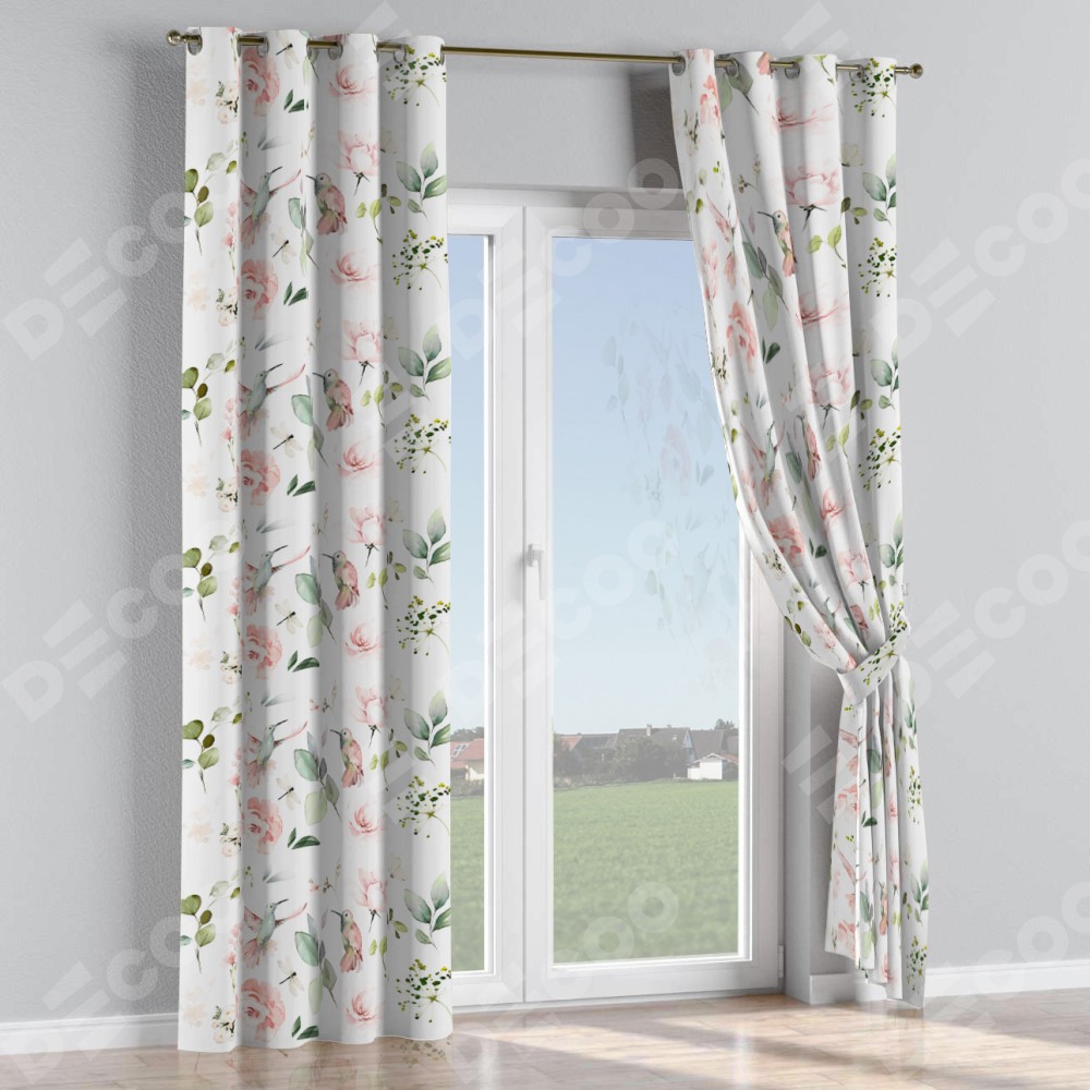 Комплект прямых штор, от производителя «Cortin», пошиты из ткани блэкаут с нанесением сублимационной печати «Уютный сад». Данная модель пошита на люверсах, комплектуется на выбор круглым карнизом и подходит для монтажа на стену или потолок. Прямые шторы на люверсах шьются по стандарту с коэффициентом 1/2 (на 100 см. ширины проёма 200 см. ширины ткани), отличительным преимуществом данной модели является простой способ монтажа. Достаточно повесить ее на трубу и штора готова!