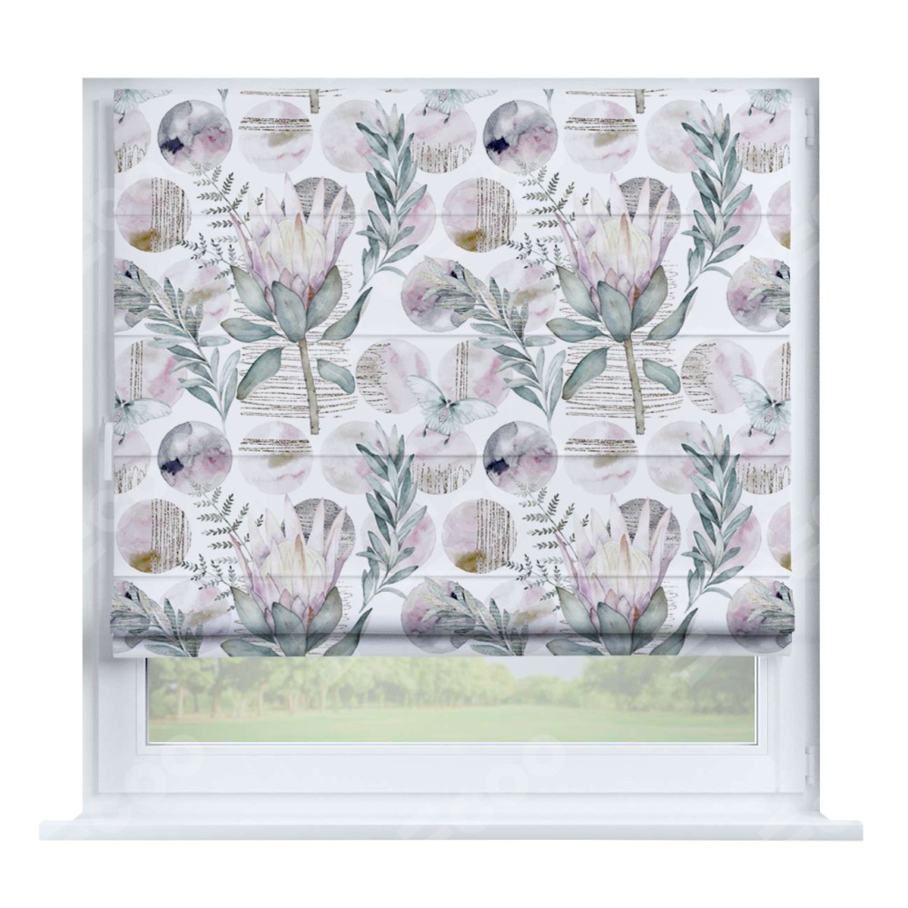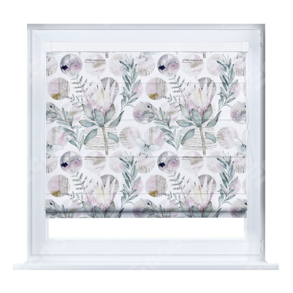 Римская штора производителя «Cortin», устанавливается на створку окна, пошита из ткани блэкаут с нанесением сублимационной печати «Розовый лотос». Штора шьётся по индивидуальным размерам, для данного типа римской шторы возможная ширина от 35 до 150 см., высота до 250 см.