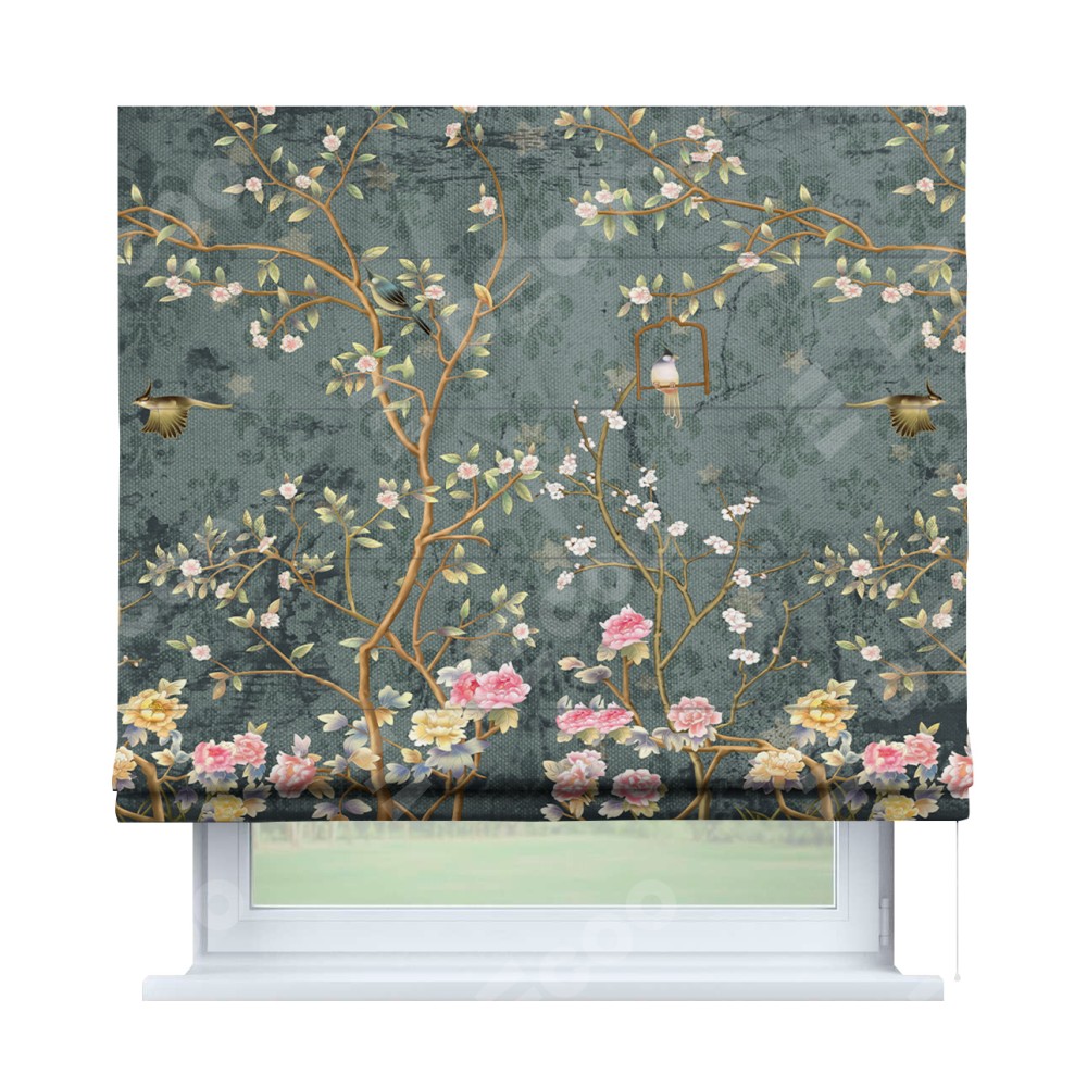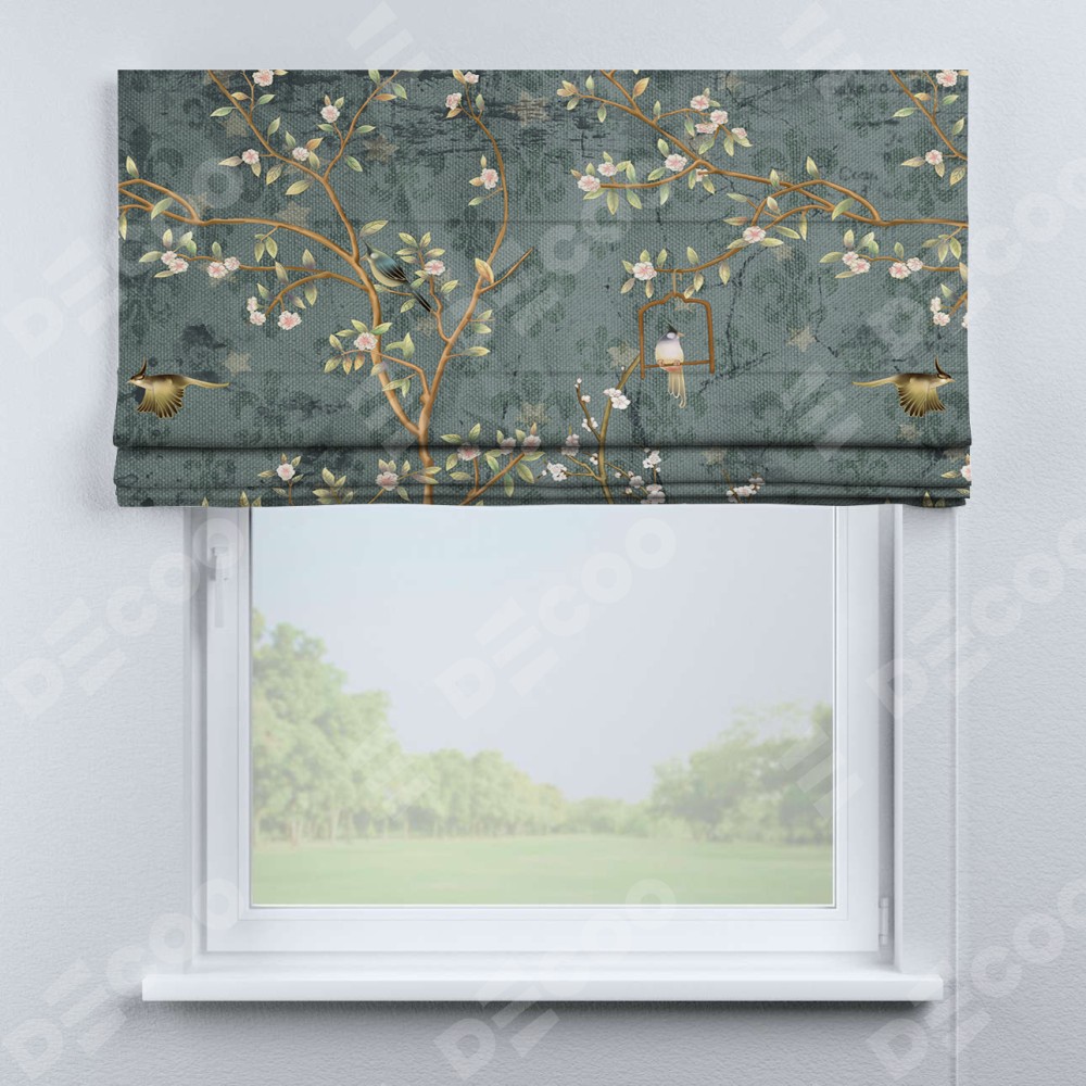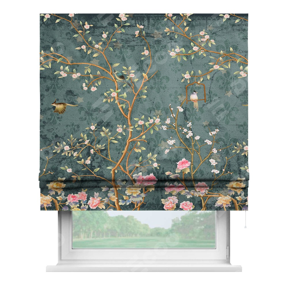 Римская штора производителя «Cortin», используется для проёма, пошита из ткани блэкаут с нанесением сублимационной печати «Тенистый сад». Имеет универсальный механизм и подходит для монтажа: на потолок, на стену и в нишу.