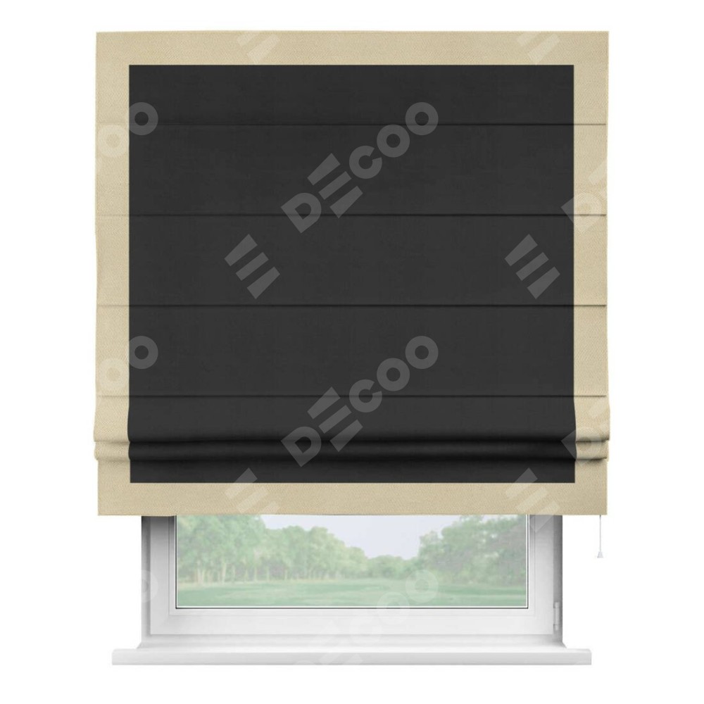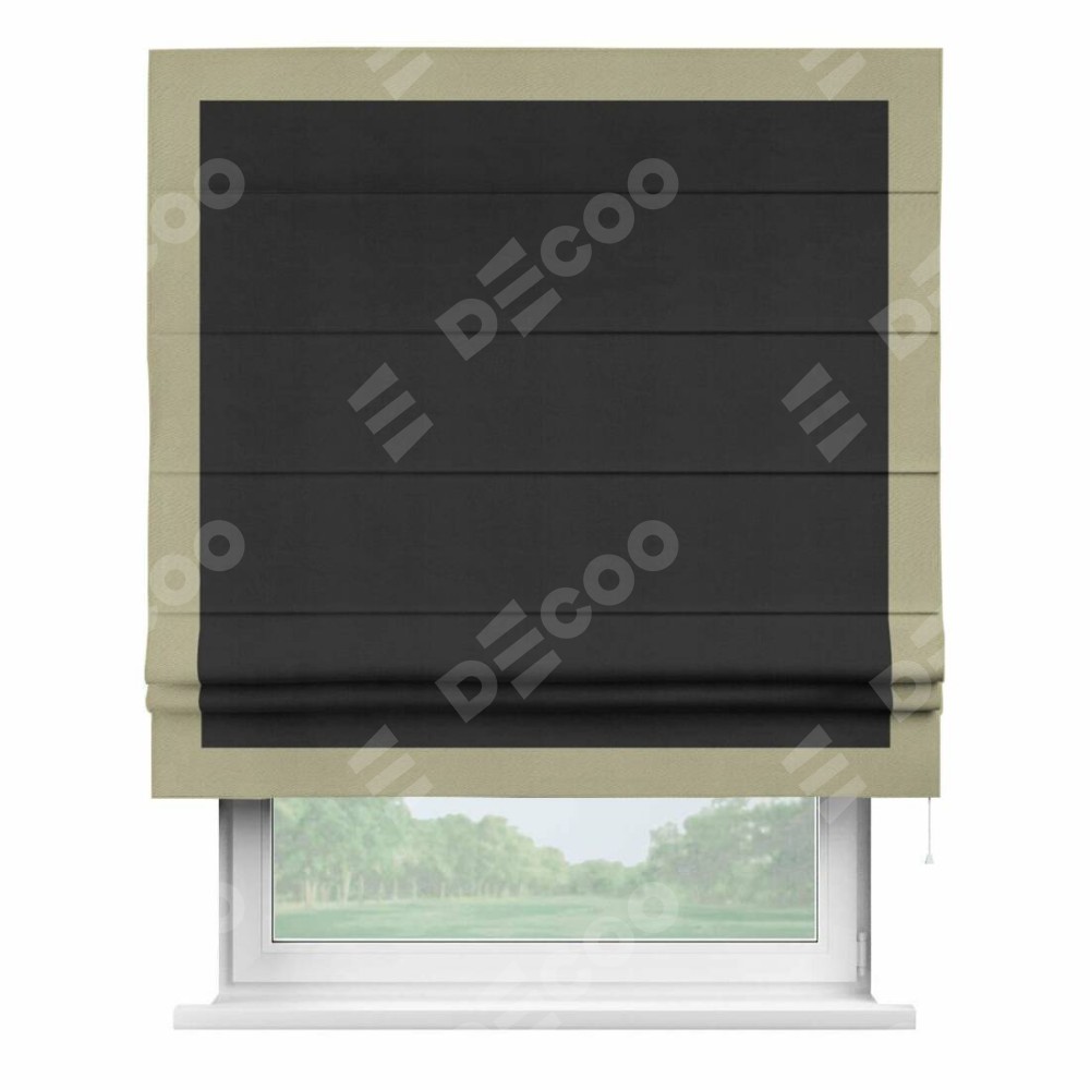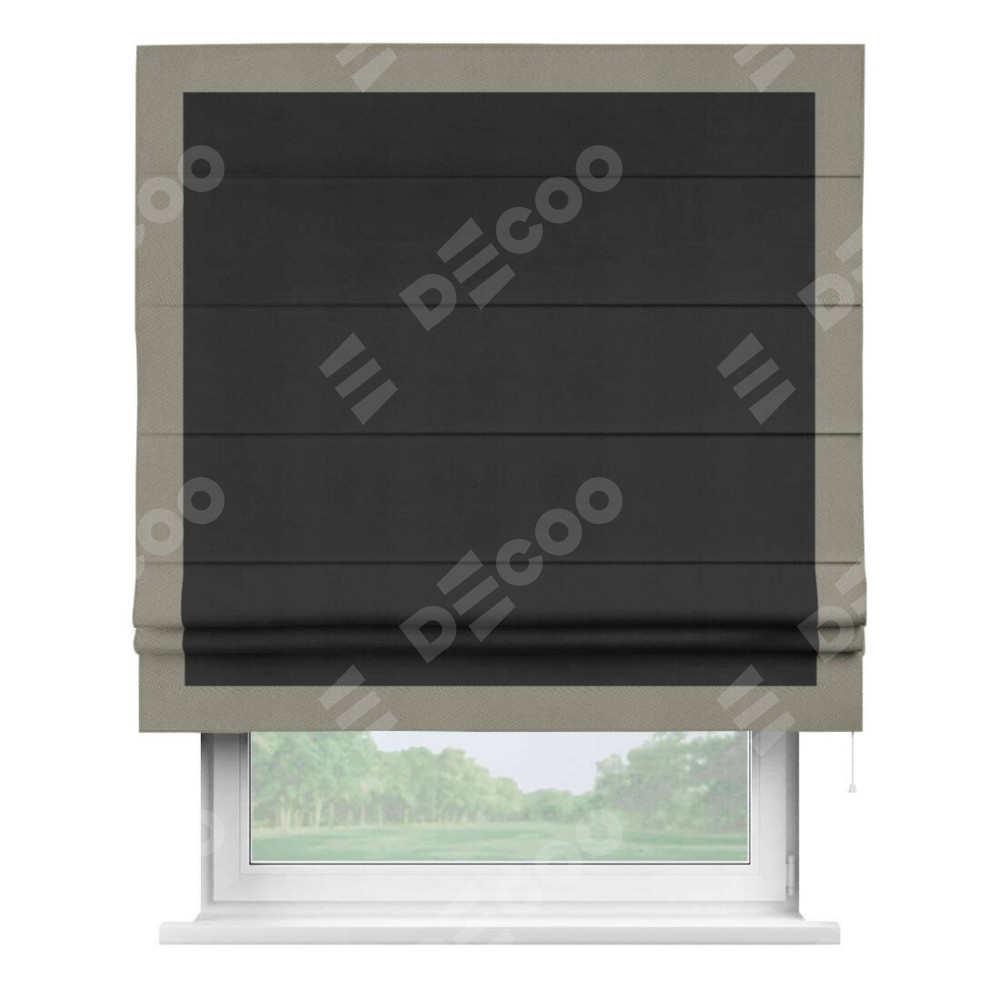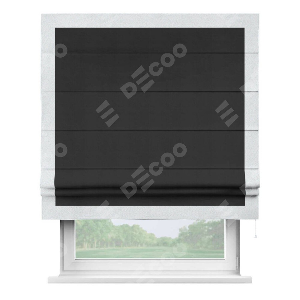 Римская штора «Кортин» с кантом Чесс, для проема, ткань блэкаут однотонный черный