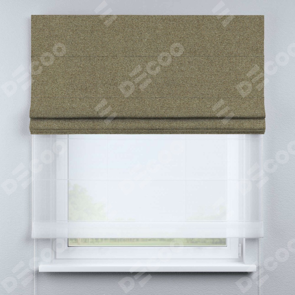Римская штора день-ночь производителя «Cortin», используется для проёма, пошита из двух полотен, с лицевой стороны лён блэкаут бежевый артикул 69435, вторая ткань тюль (по стандарту комплектуется тюль белого цвета артикул V-01). Имеет универсальный механизм и подходит для монтажа: на потолок, на стену и в нишу.
