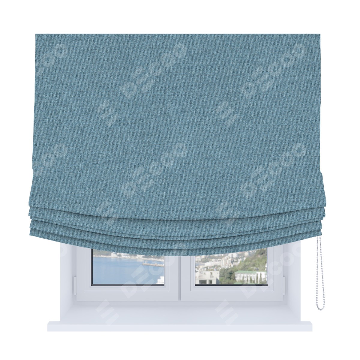 Римская штора Soft производителя «Cortin», используется для проёма, пошита из ткани лён блэкаут голубой, артикул ткани 69574. Имеет универсальный механизм и подходит для монтажа: на потолок, на стену и в нишу. В отличие от стандартных римских штор, римская штора Soft не имеет горизонтальных вставок и нижнего отвеса. Это позволяет ткани произвольно драпироваться в свободные мягкие складки.