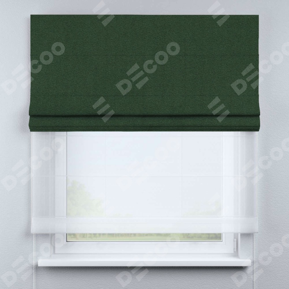 Римская штора день-ночь производителя «Cortin», используется для проёма, пошита из двух полотен, с лицевой стороны лён блэкаут зелёный артикул 69497, вторая ткань тюль (по стандарту комплектуется тюль белого цвета артикул V-01). Имеет универсальный механизм и подходит для монтажа: на потолок, на стену и в нишу.