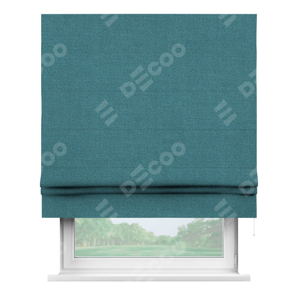 Римская штора «Кортин» для проема, ткань лён блэкаут, синий