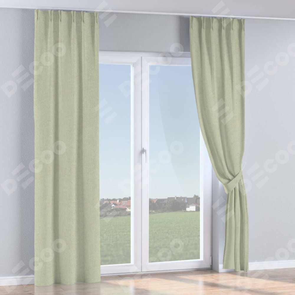 Комплект прямых штор, от производителя «Cortin», пошиты из ткани лён блэкаут серо-бежевый, артикул ткани 69450. С изнаночной стороны в верхней части штор пристрачивается шторная лента с декоративными складками «Кустик». Для создания элегантных складок прямые шторы шьются по стандарту с коэффициентом 1:2 (на 100 см. ширины проёма 200 см. ширины ткани).