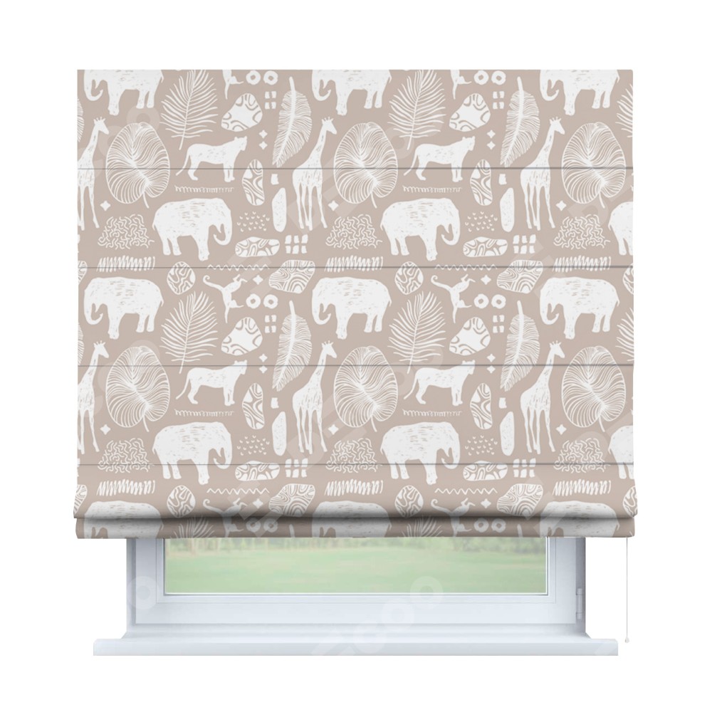 Римская штора производителя «Cortin», используется для проёма, пошита из ткани блэкаут с нанесением сублимационной печати «Африканские животные». Имеет универсальный механизм и подходит для монтажа: на потолок, на стену и в нишу.