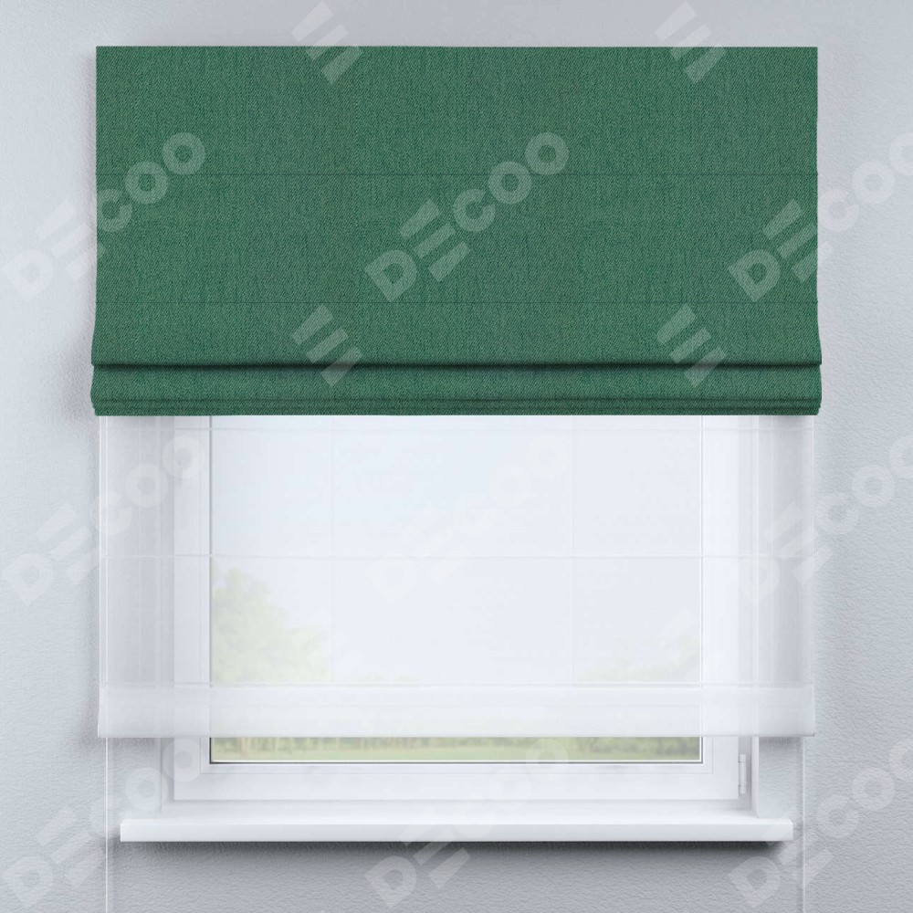 Римская штора день-ночь производителя «Cortin», используется для проёма, пошита из двух полотен, с лицевой стороны твид блэкаут зелёный