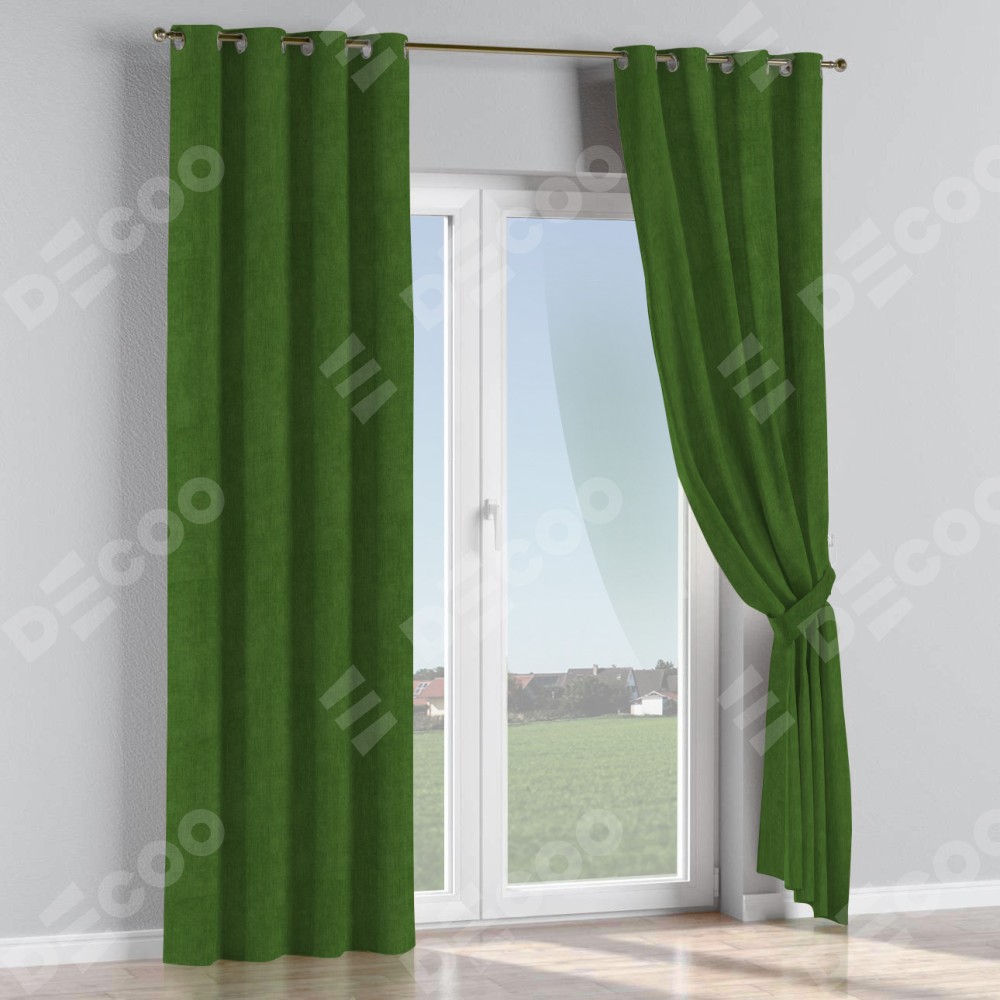 Комплект прямых штор, от производителя «Cortin», пошиты из ткани вельвет тёмно-салатовый, артикул ткани 33805. Данная модель пошита на люверсах, комплектуется на выбор круглым карнизом и подходит для монтажа на стену или потолок. Прямые шторы на люверсах шьются по стандарту с коэффициентом 1/2 (на 100 см. ширины проёма 200 см. ширины ткани), отличительным преимуществом данной модели является простой способ монтажа. Достаточно повесить ее на трубу и штора готова!