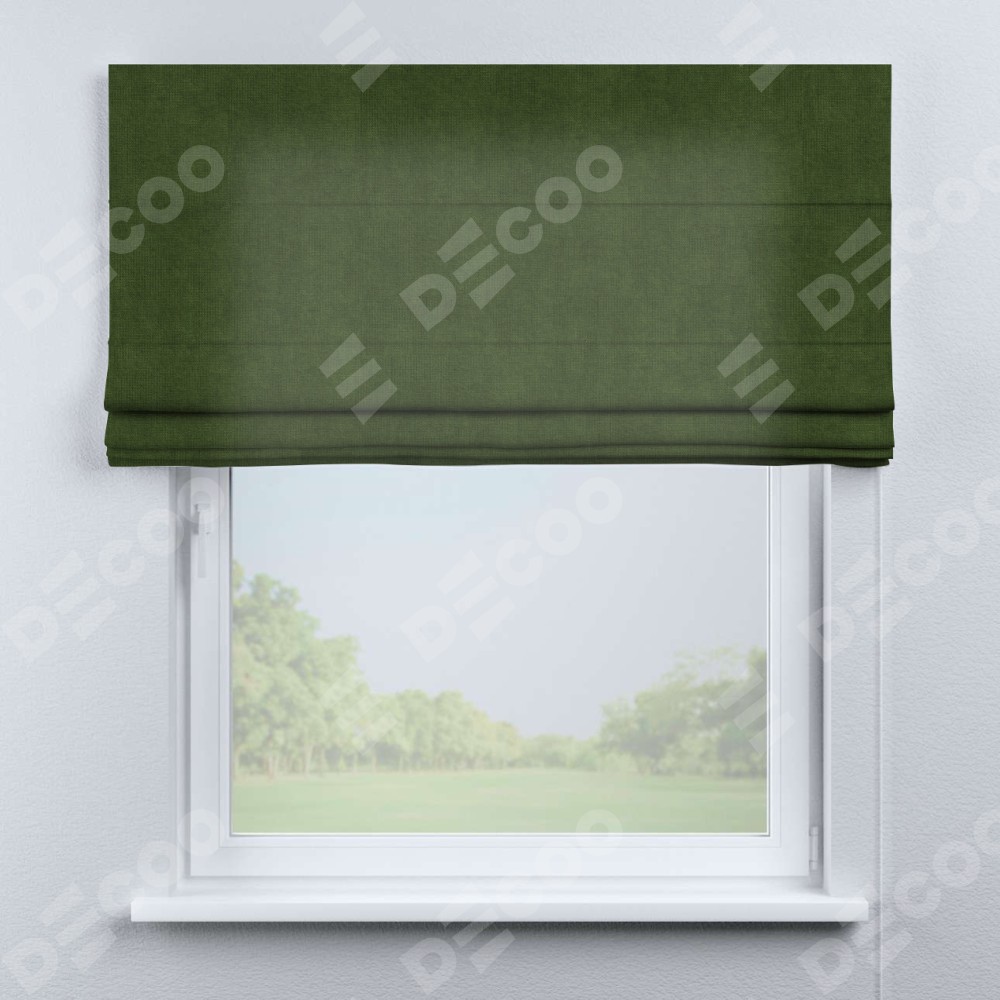 Римская штора «Кортин» для проема, ткань вельвет тёмно-салатовый