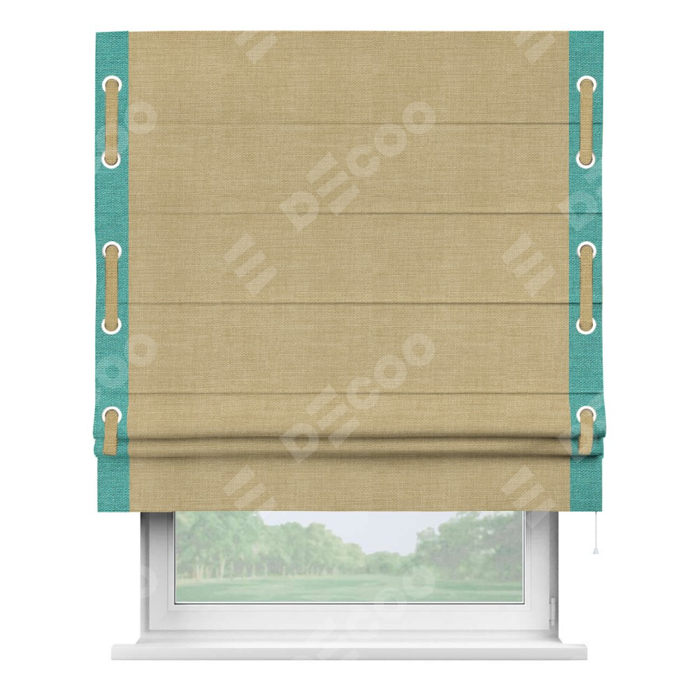 Римская штора «Кортин» с кантом Стрим Дуо (люверсы с пояском), для проема, ткань лён бежевый