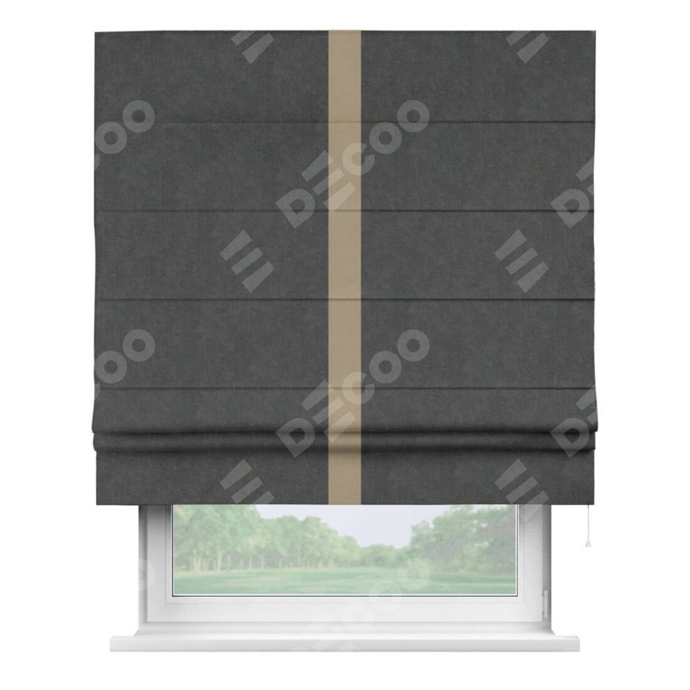 Римская штора «Кортин» с кантом Хайвэй, для проема, ткань вельвет цвет тёмно-серый
