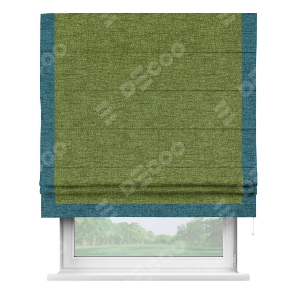 Римская штора «Кортин» с кантом Виктория, для проема, ткань рогожка димаут, салатовый