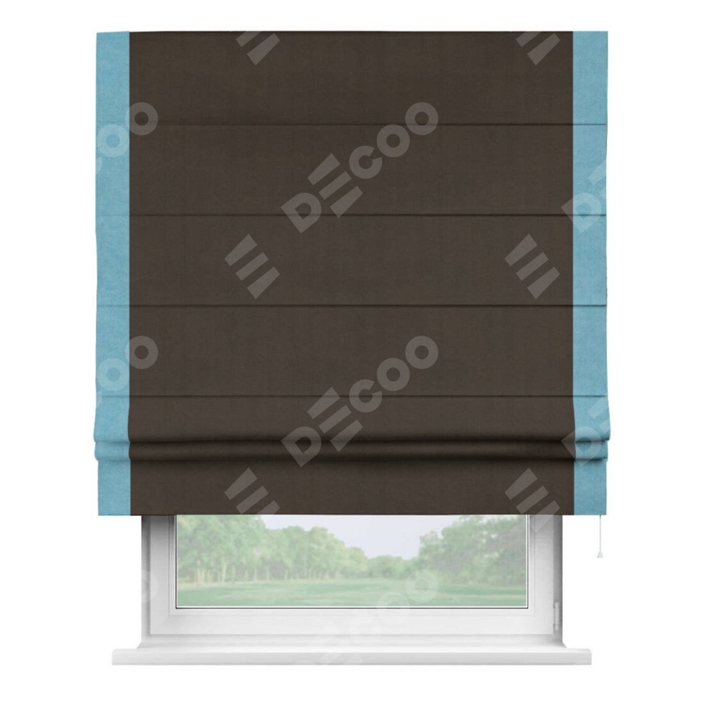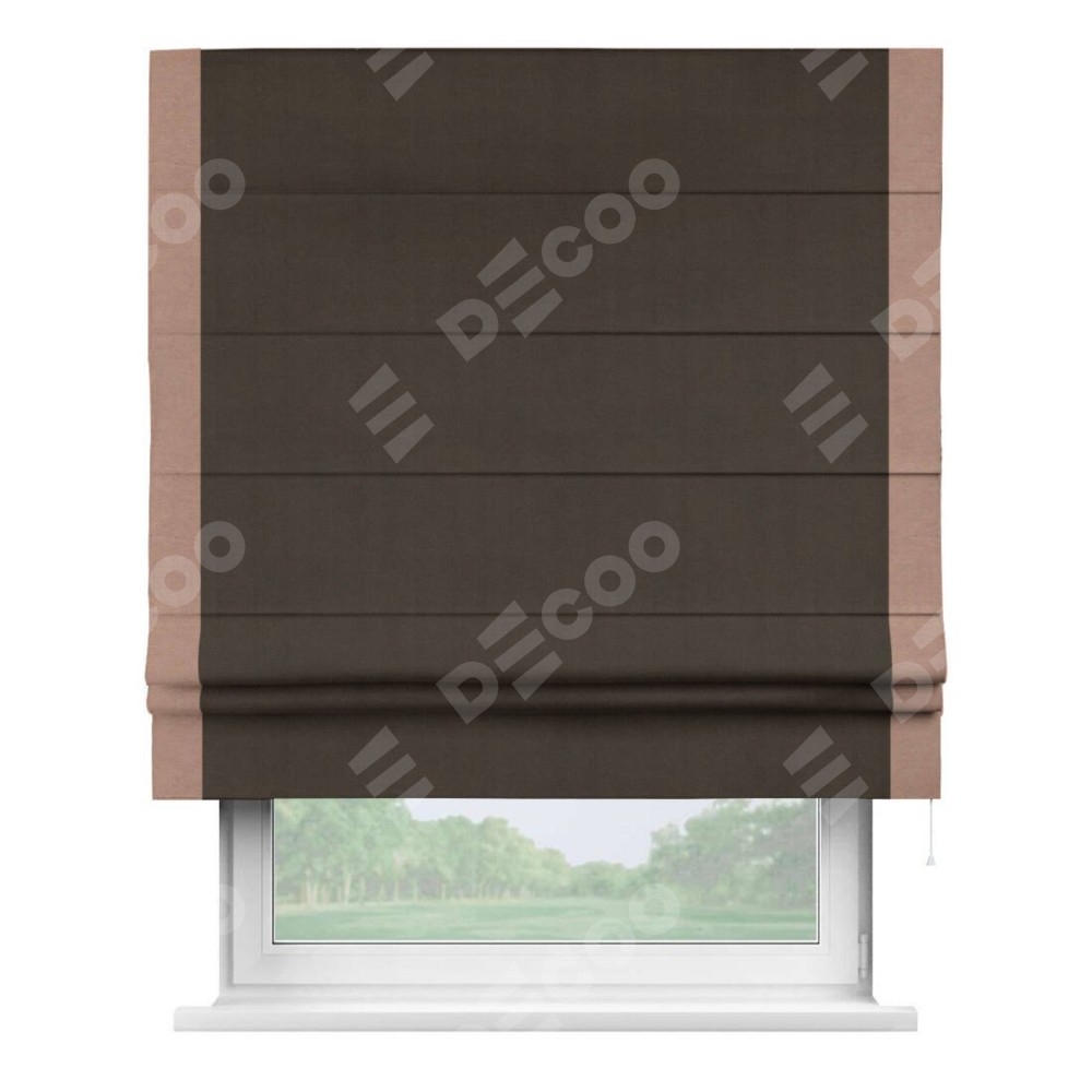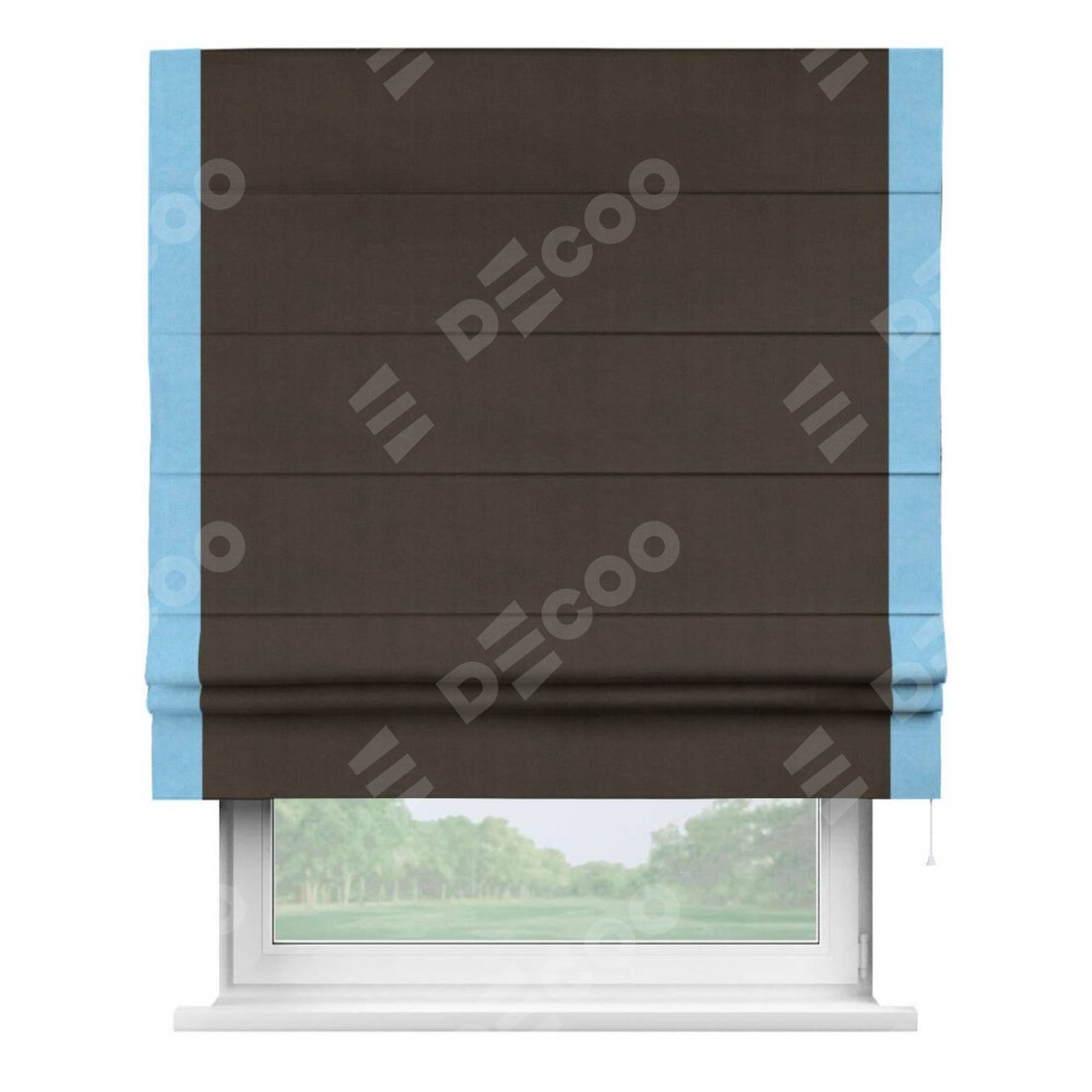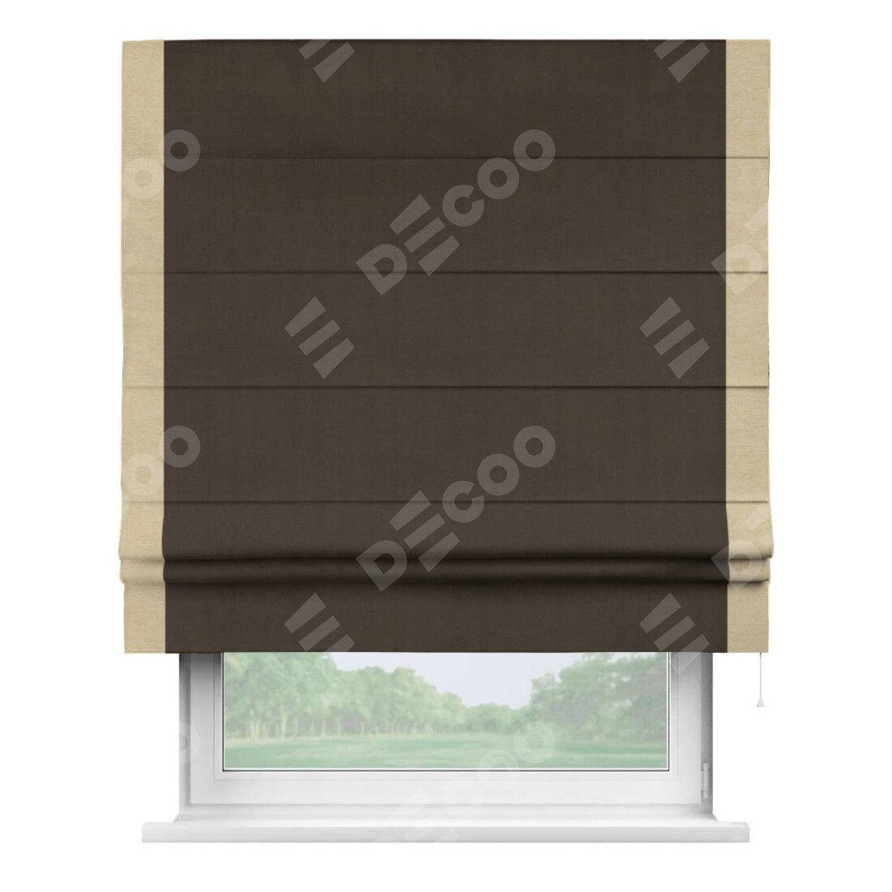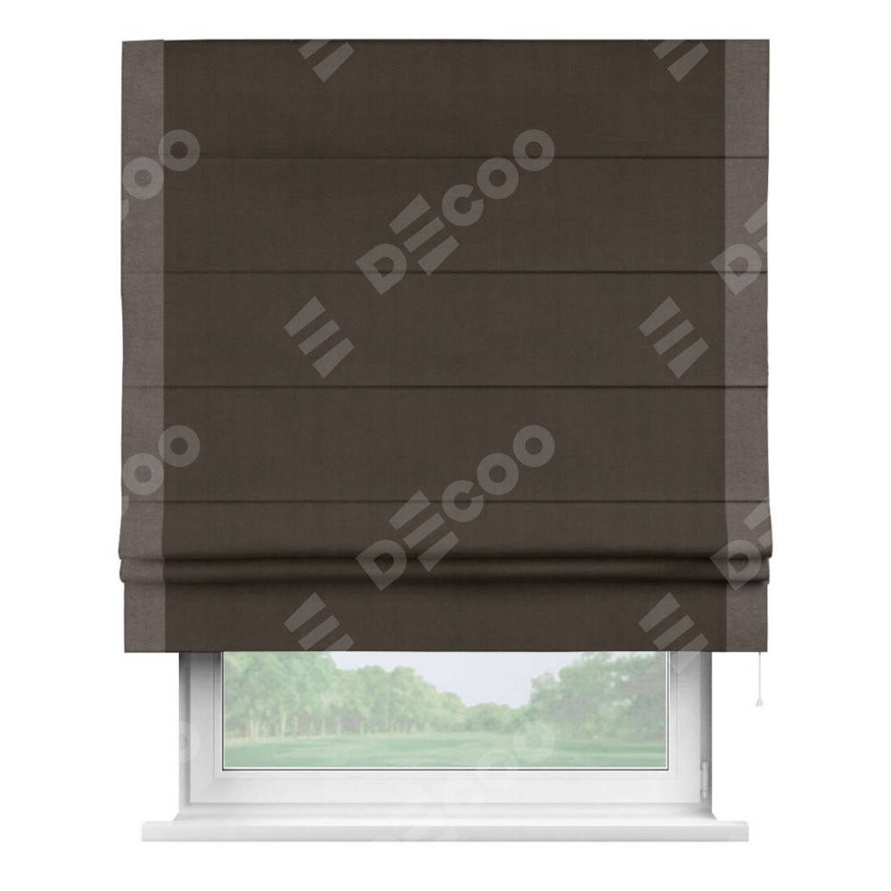 Римская штора «Кортин» с кантом Стрим Дуо, для проема, ткань вельвет тёмно-коричневый