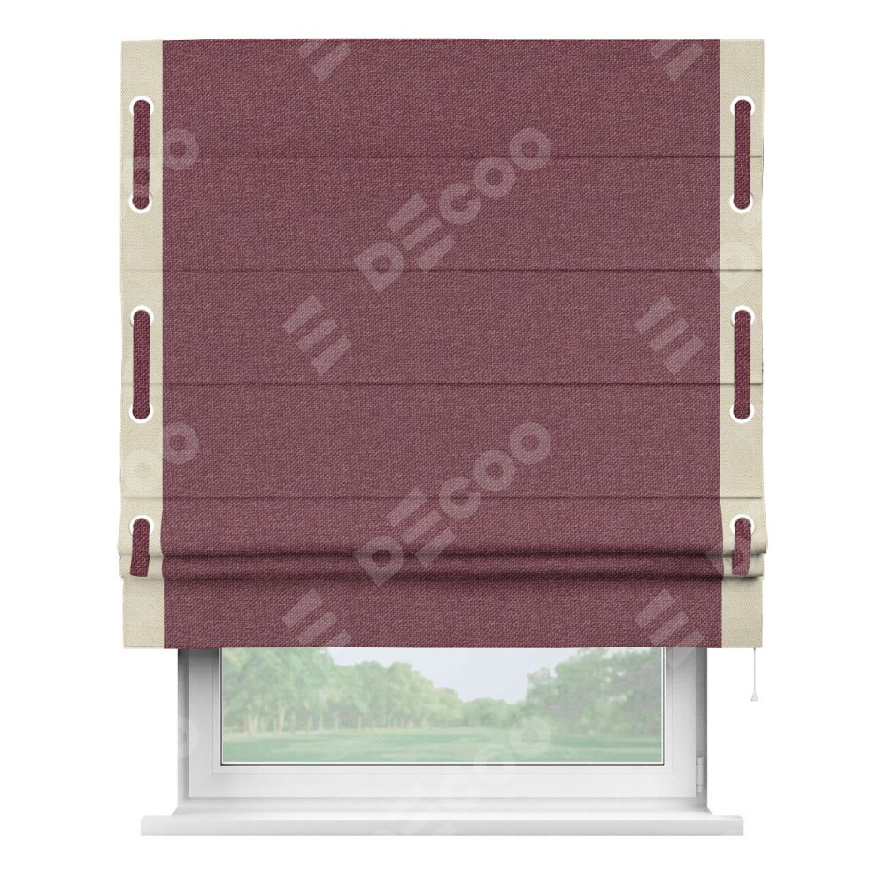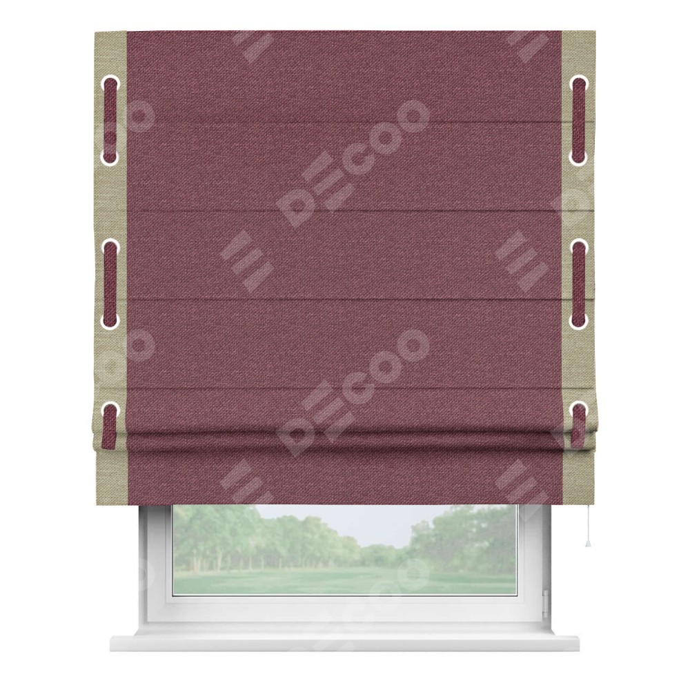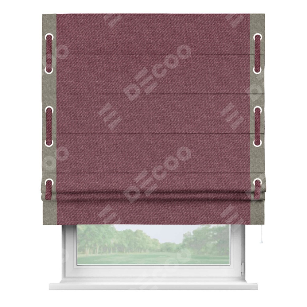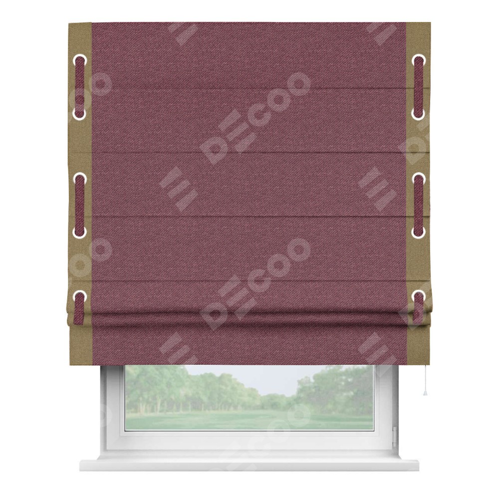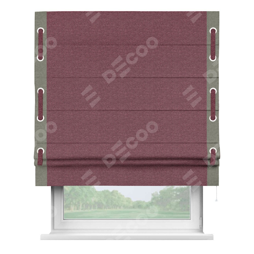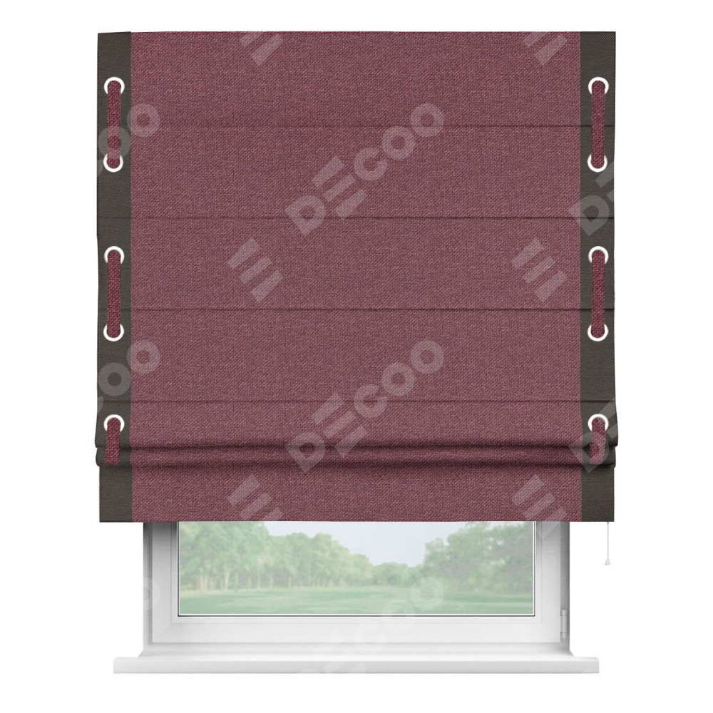 Римская штора «Кортин» с кантом Стрим Дуо (люверсы с пояском), для проема, ткань лён димаут, марсала