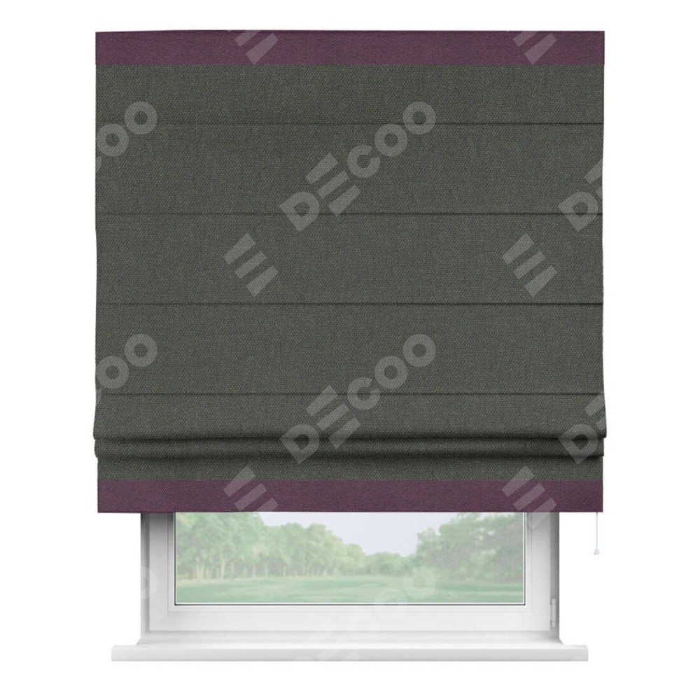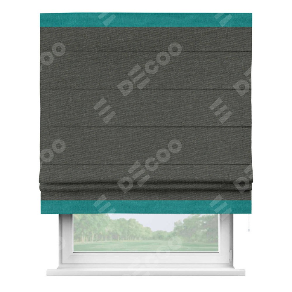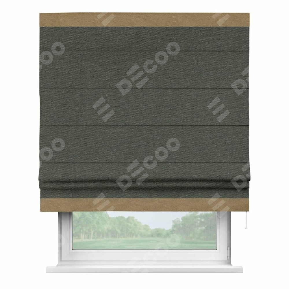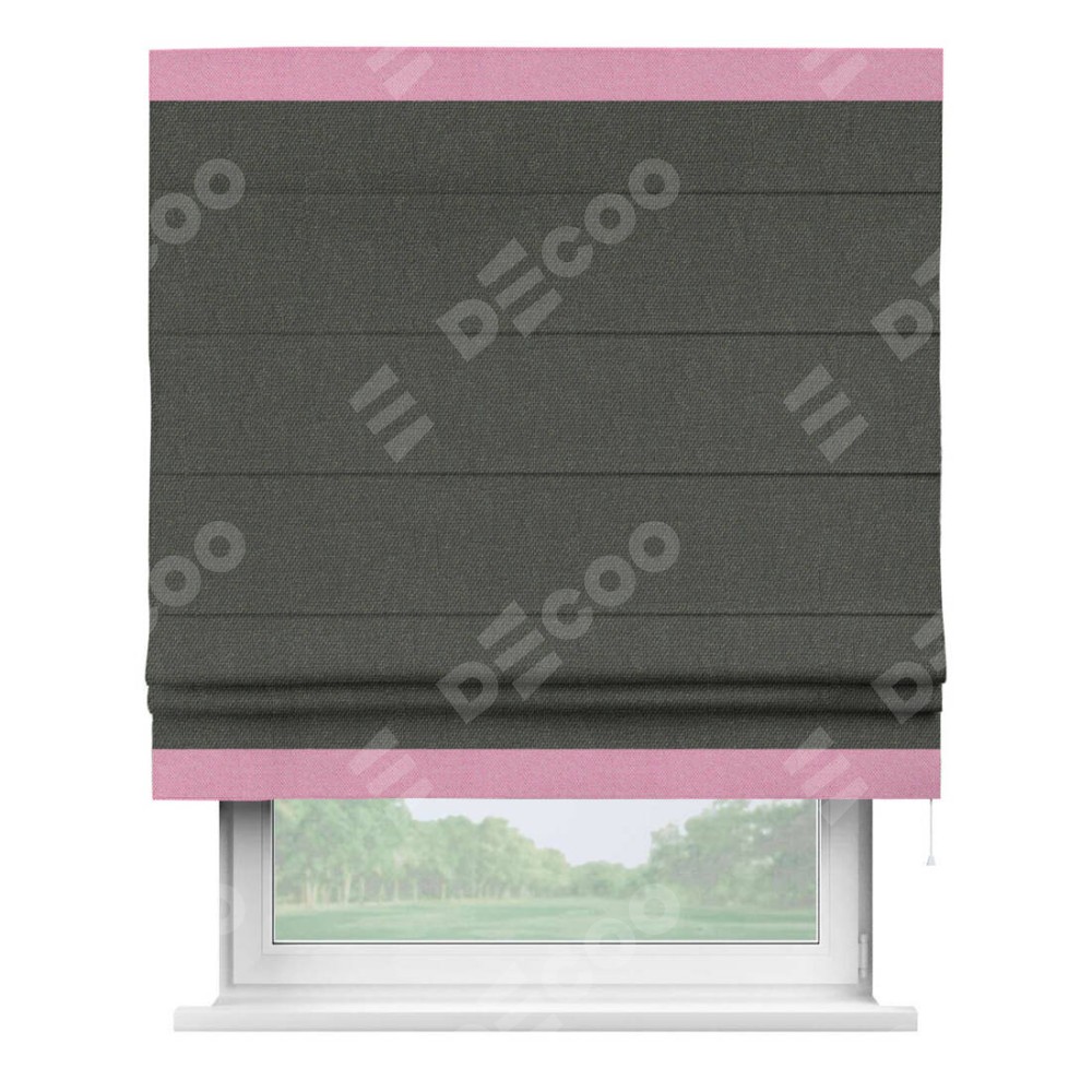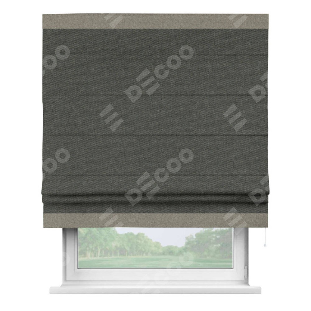 Римская штора «Кортин» с кантом Горизонт, для проема, ткань лён димаут, графитово-серый