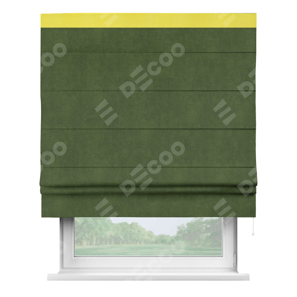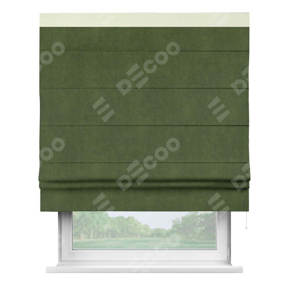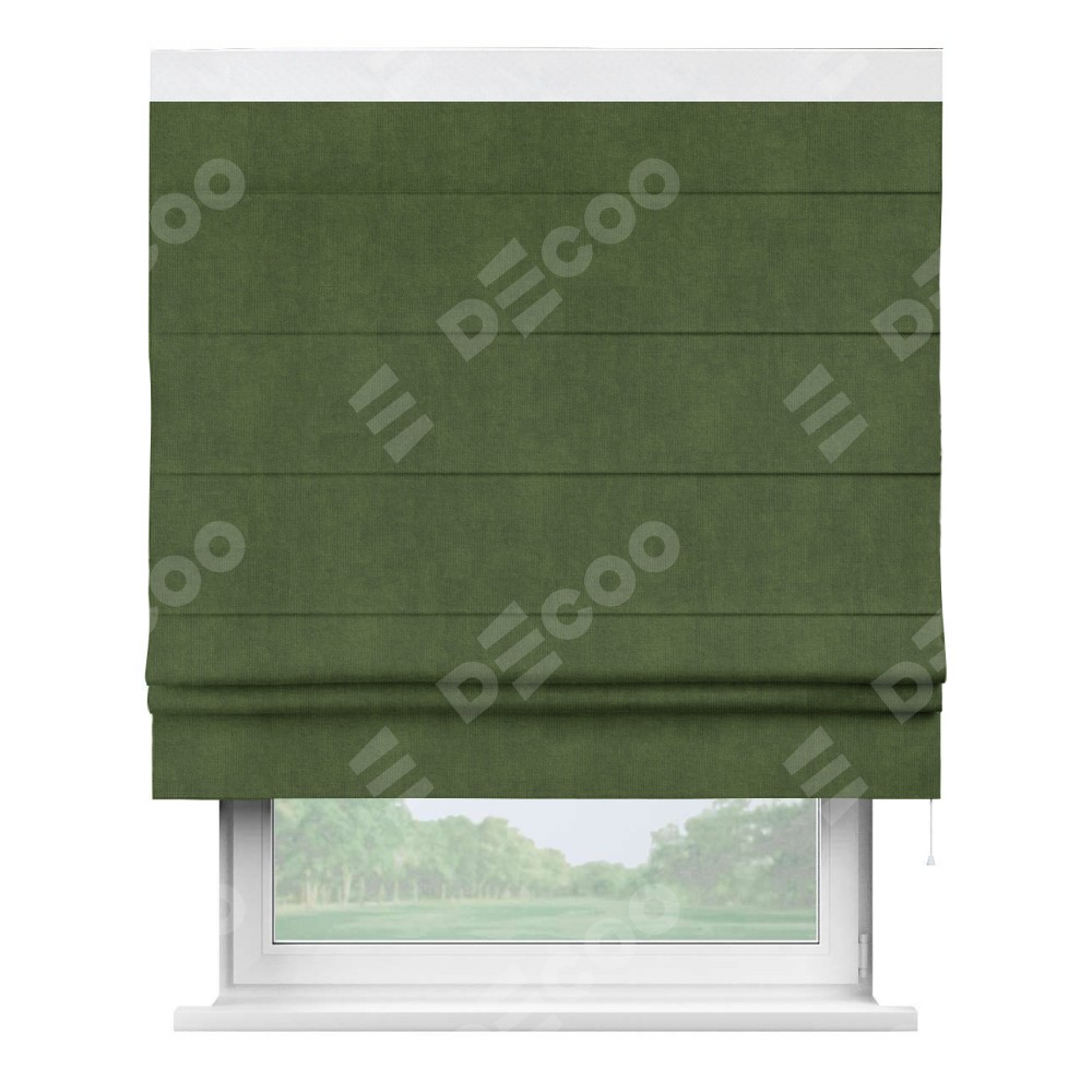 Римская штора «Кортин» с кантом Кинг, для проема, ткань вельвет тёмно-салатовый